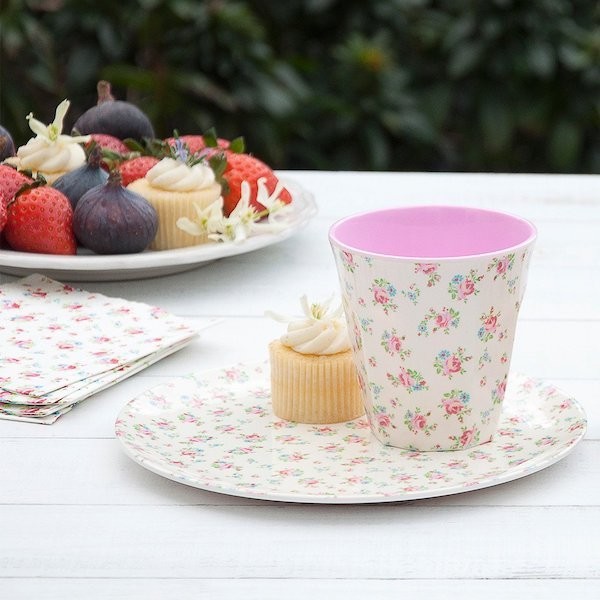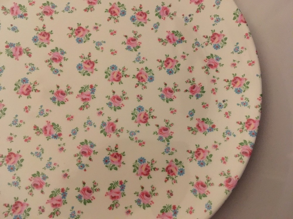 작은 장미꽃이 가득 프린트된 멜라민 접시로, 빈티지한 느낌이 나서 다양하게 사용하실 수 있을 것 같아요. 어떤 커트러리와 함께 놔둬도 다 잘 어울리는 귀여운 접시예요.