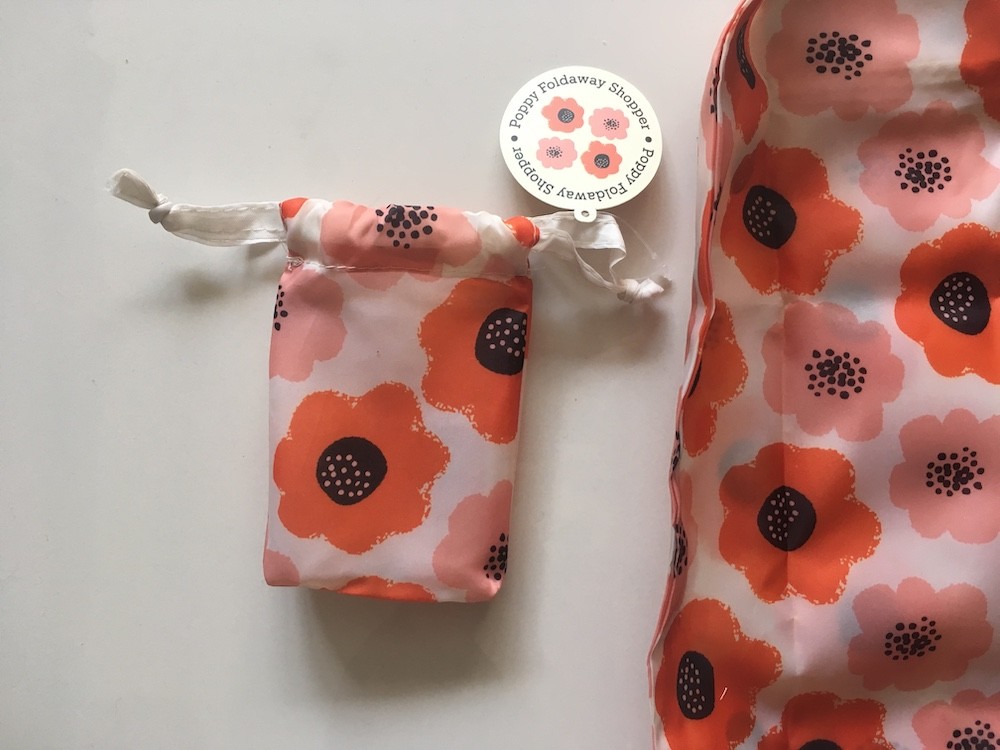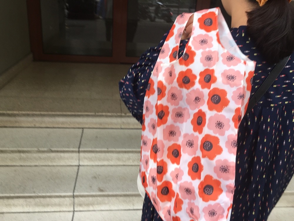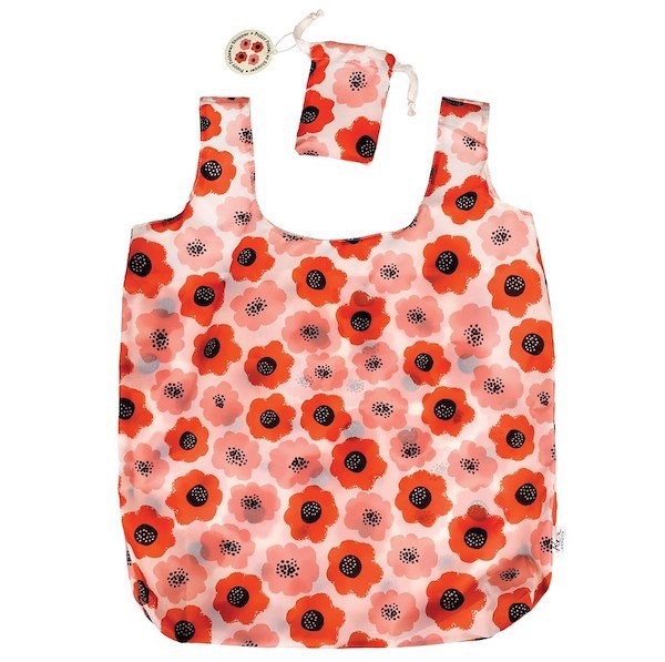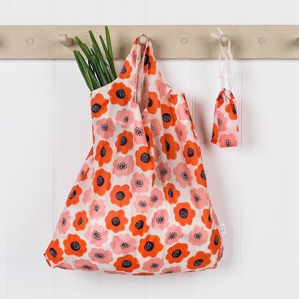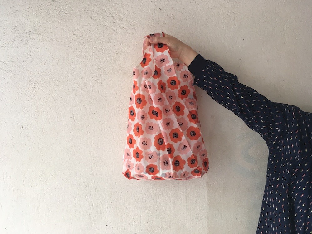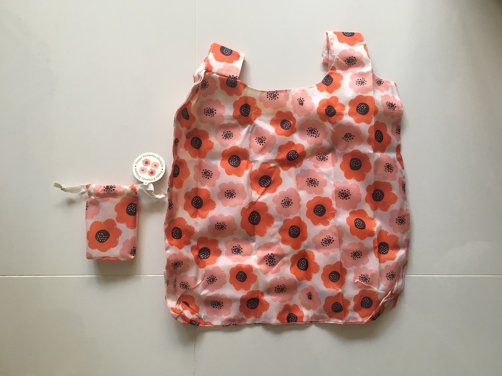 꽃무늬가 가득 프린트된 장바구니로, 가방에 넣고 다니다가 필요할 때 쏙 꺼내쓰기 좋아요. 가방을 접어 넣을 수 있는 작은 파우치가 있어서 작은 사이즈로 접어 갖고다니기 좋고요. 게다가 손잡이 부분엔 원단이 두겹이라 튼튼하기까지 해요!