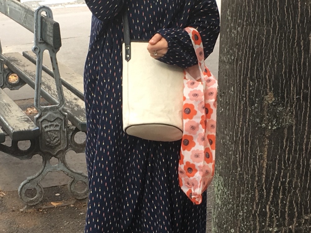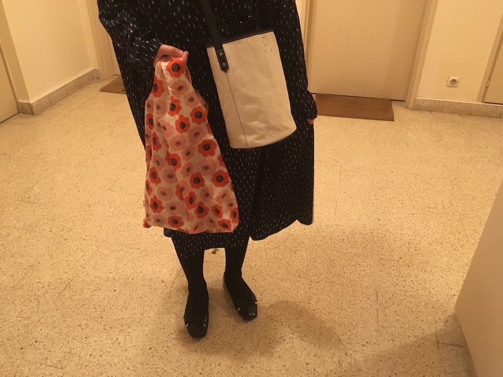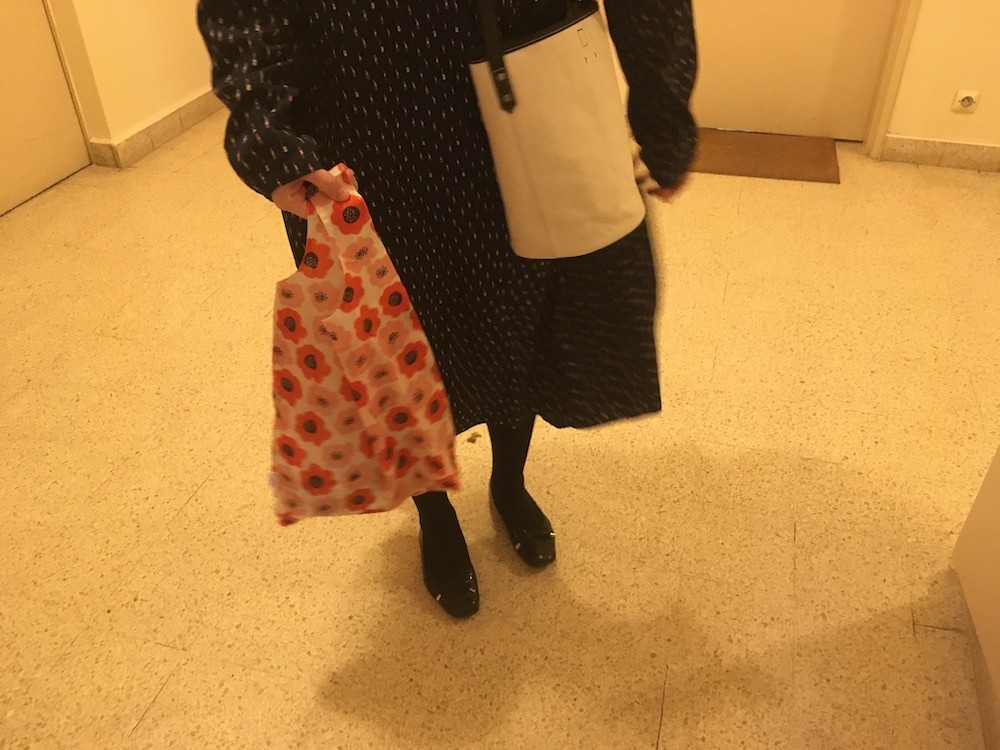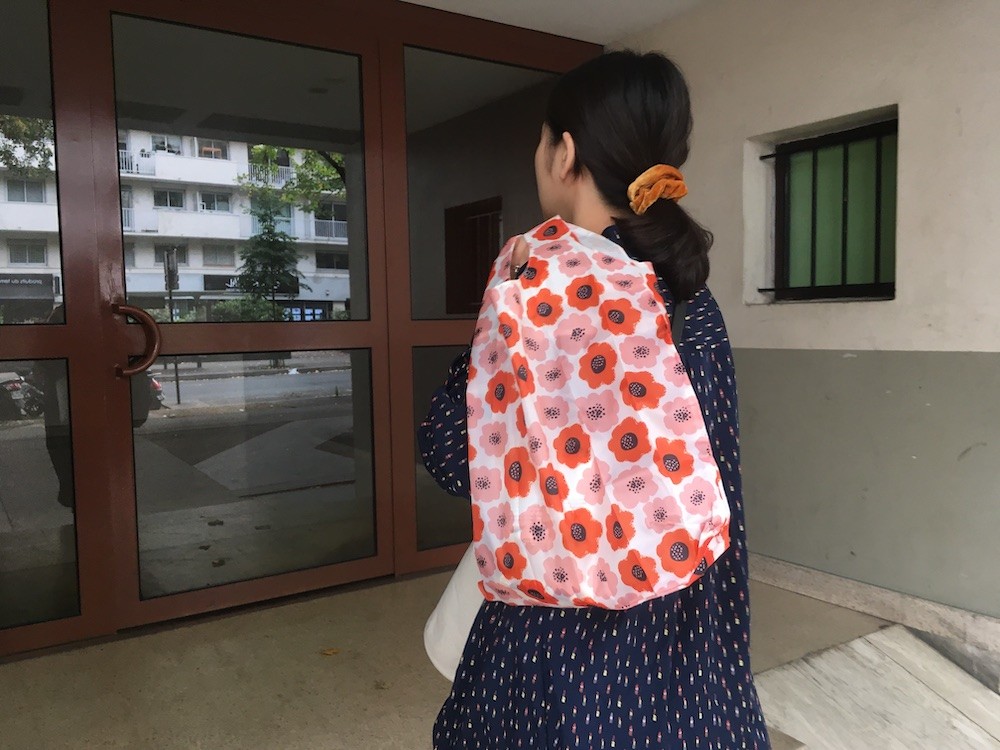 꽃무늬가 가득 프린트된 장바구니로, 가방에 넣고 다니다가 필요할 때 쏙 꺼내쓰기 좋아요. 가방을 접어 넣을 수 있는 작은 파우치가 있어서 작은 사이즈로 접어 갖고다니기 좋고요. 게다가 손잡이 부분엔 원단이 두겹이라 튼튼하기까지 해요!