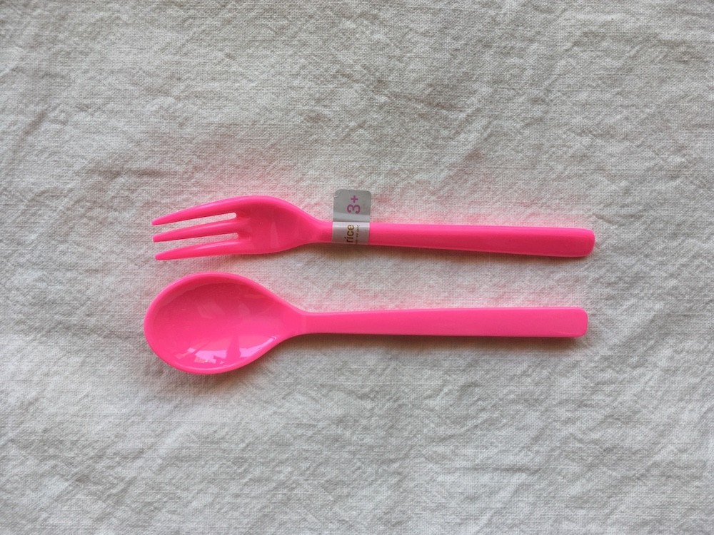 라이스(RICE) 멜라민 스푼 포크 세트_핫핑크