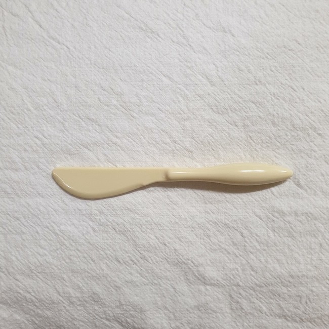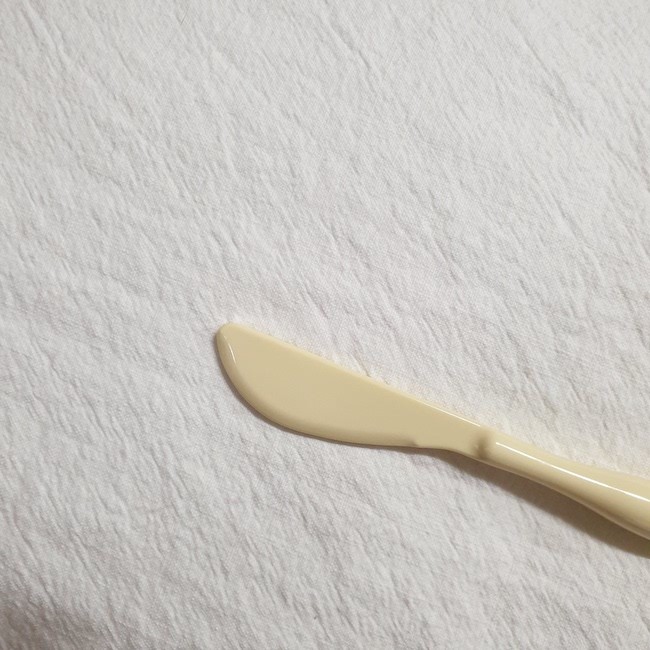 이 나이프는 어린이도 사용 가능한 제품이라 안전하게 마감을 하였기 때문에 뭔가를 자르는 용도보다는 펴바르는 용도로 사용하시는 게 좋을 것 같아요. 잼이나 버터를 펴바르기에 딱 좋은 나이프입니다.