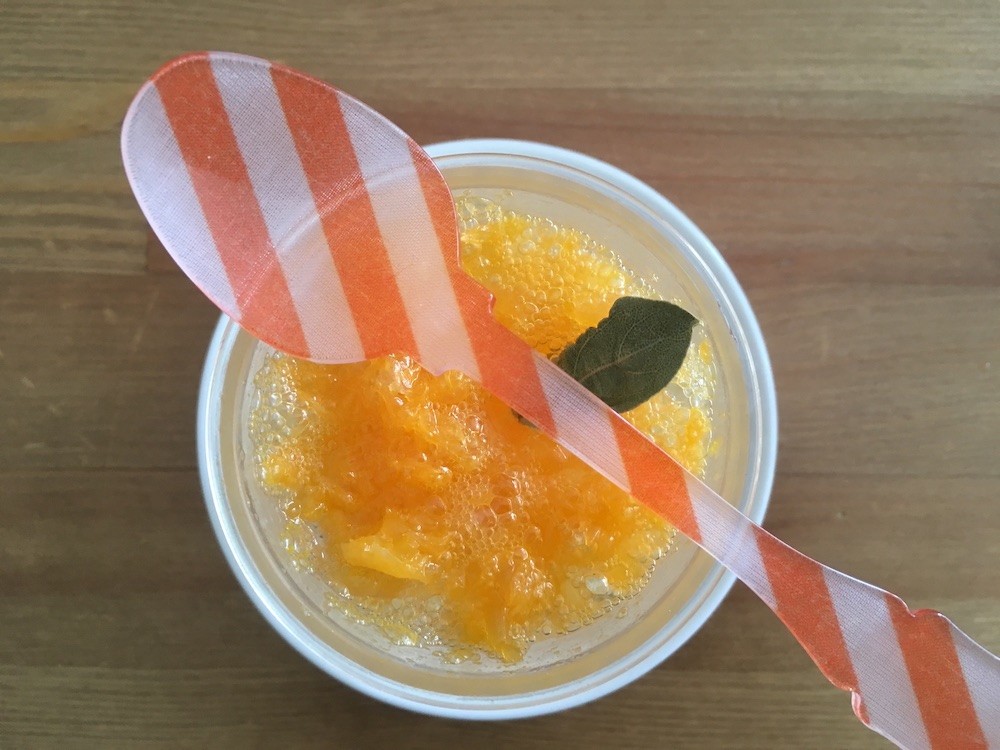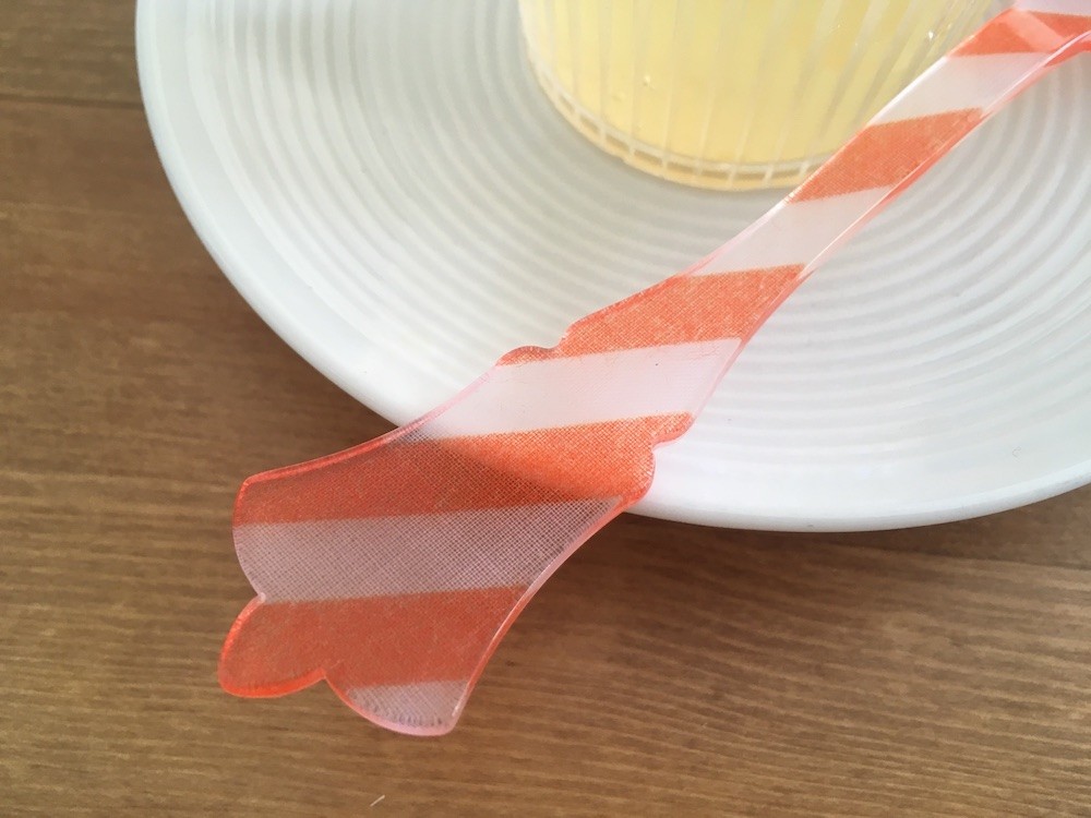 프렌치 커트러리 브랜드 사브르 파리(SABRE PARIS)의 줄무늬 스푼 중 주황입니다.