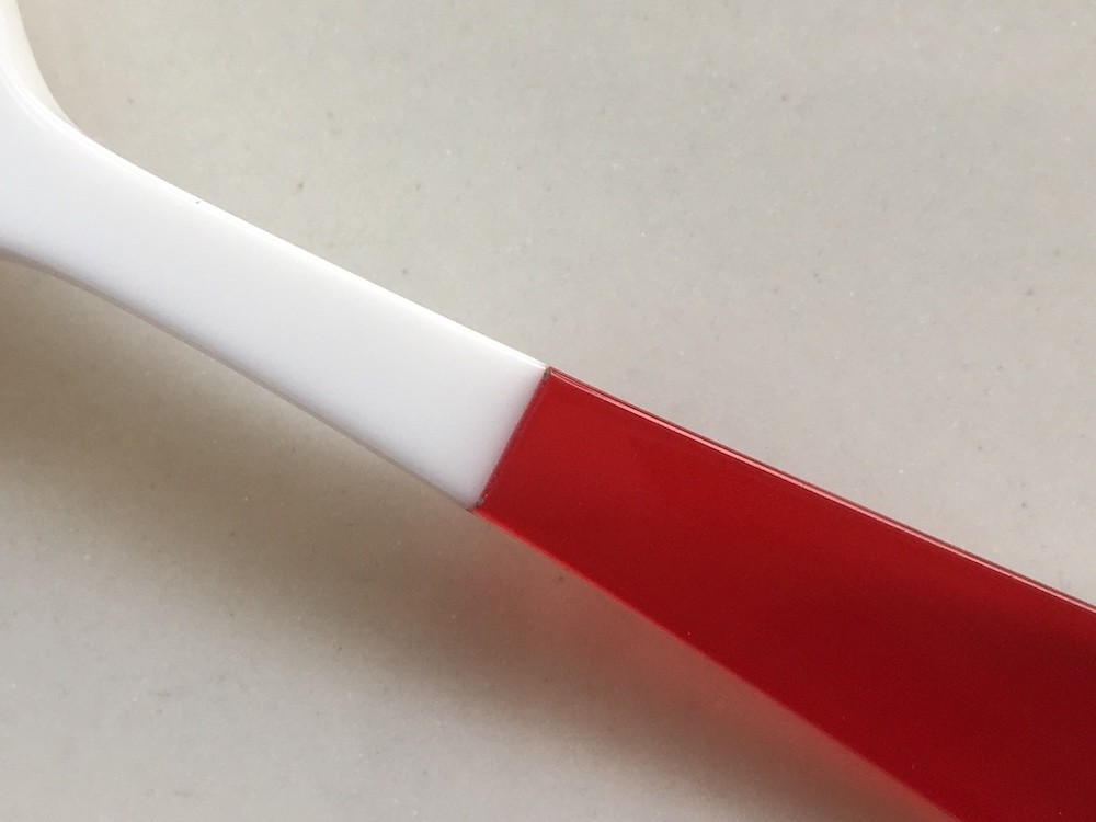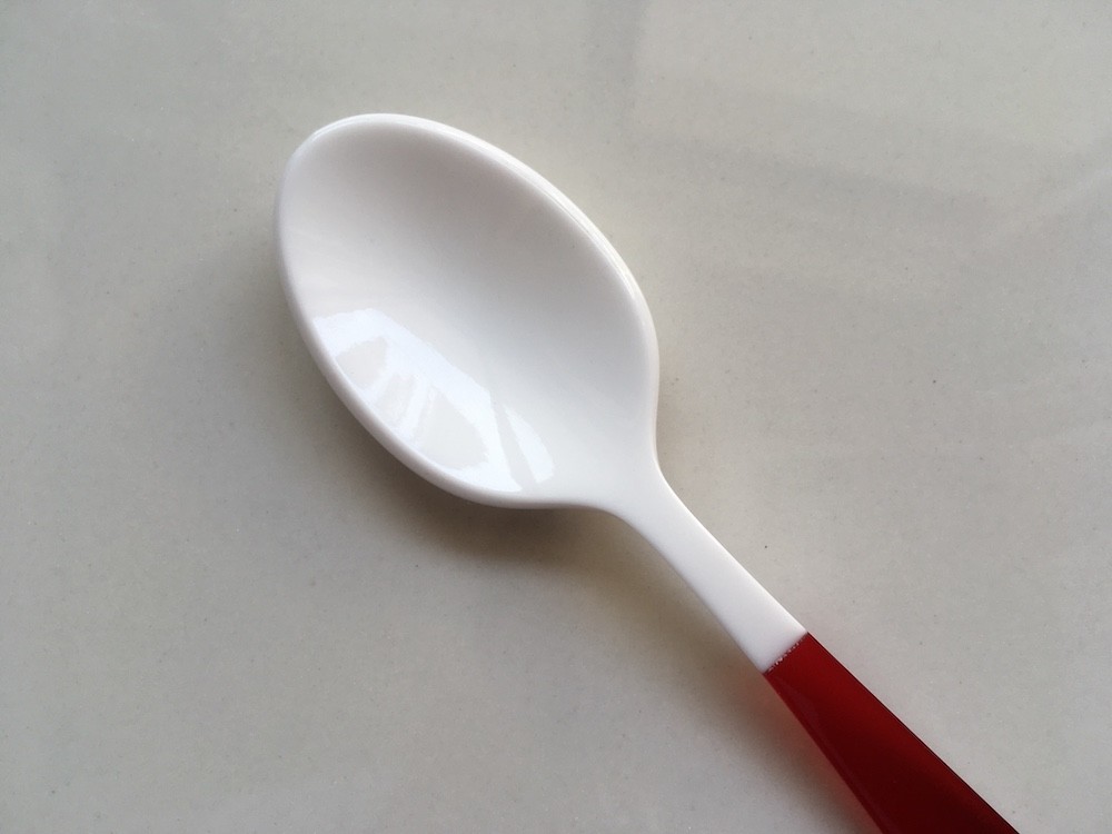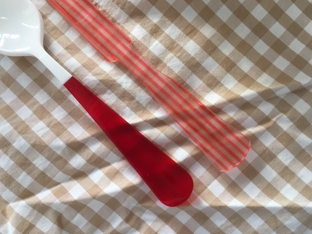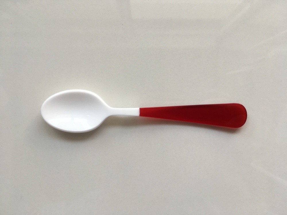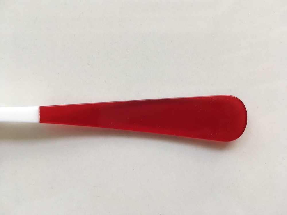 뭐 하나 찾겠다고 하면 끝까지 찾아내는 성격이라, 몇달을 뒤져 파리에 남은 재고를 긁어 모았습니다! 특히 이 스푼은 이제까지 보기 어려웠던 새로운 스타일의 스푼이라 더 특별해요. 스푼의 머리 부분엔 불투명 흰색 아크릴, 손잡이 부분엔 투명한 빨강색 아크릴을 붙여 깎은거라 모양이 특이하고 깜찍해요.