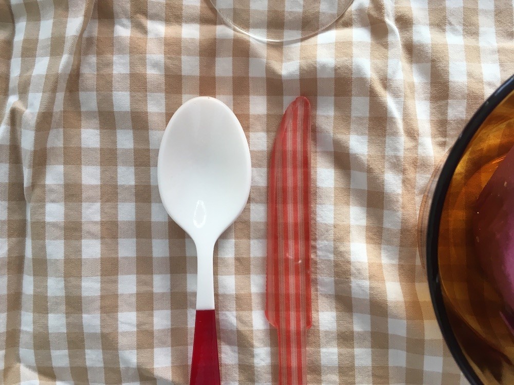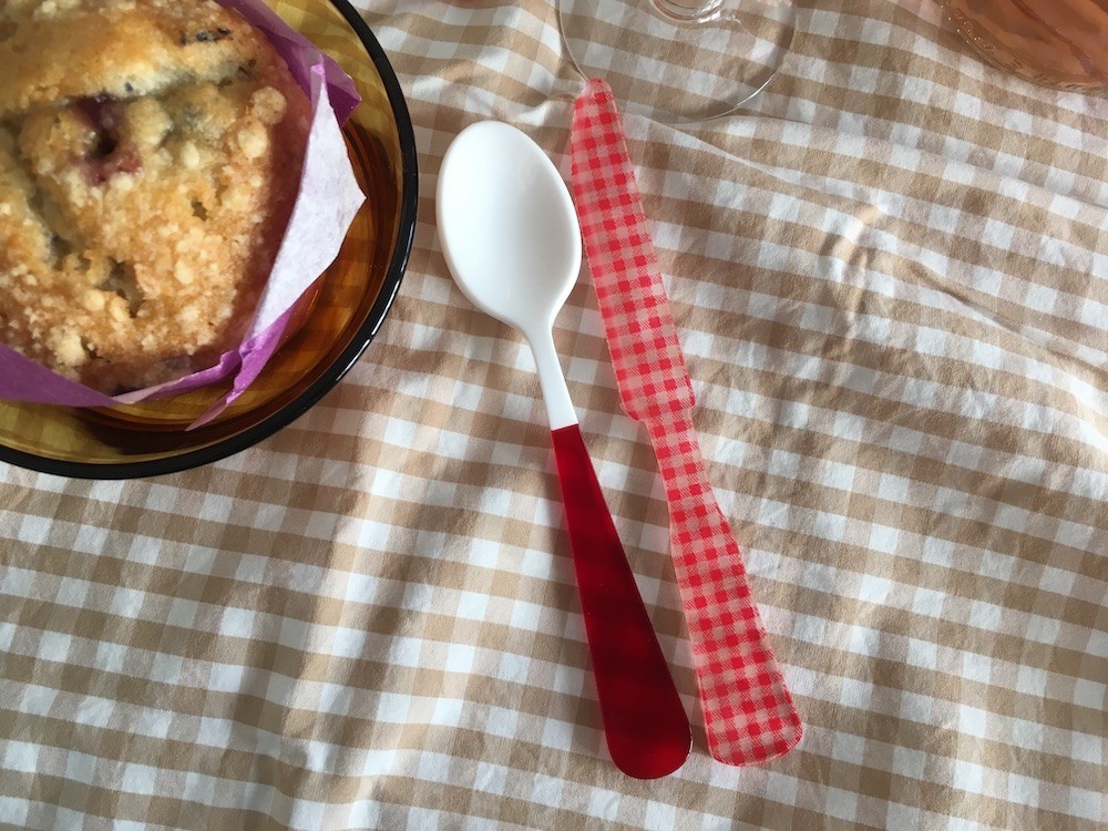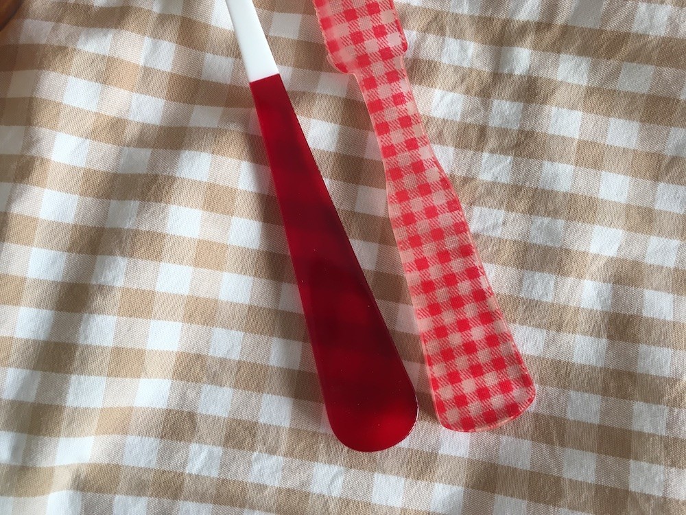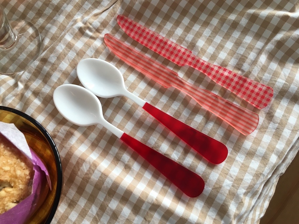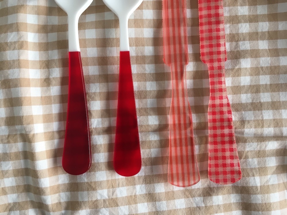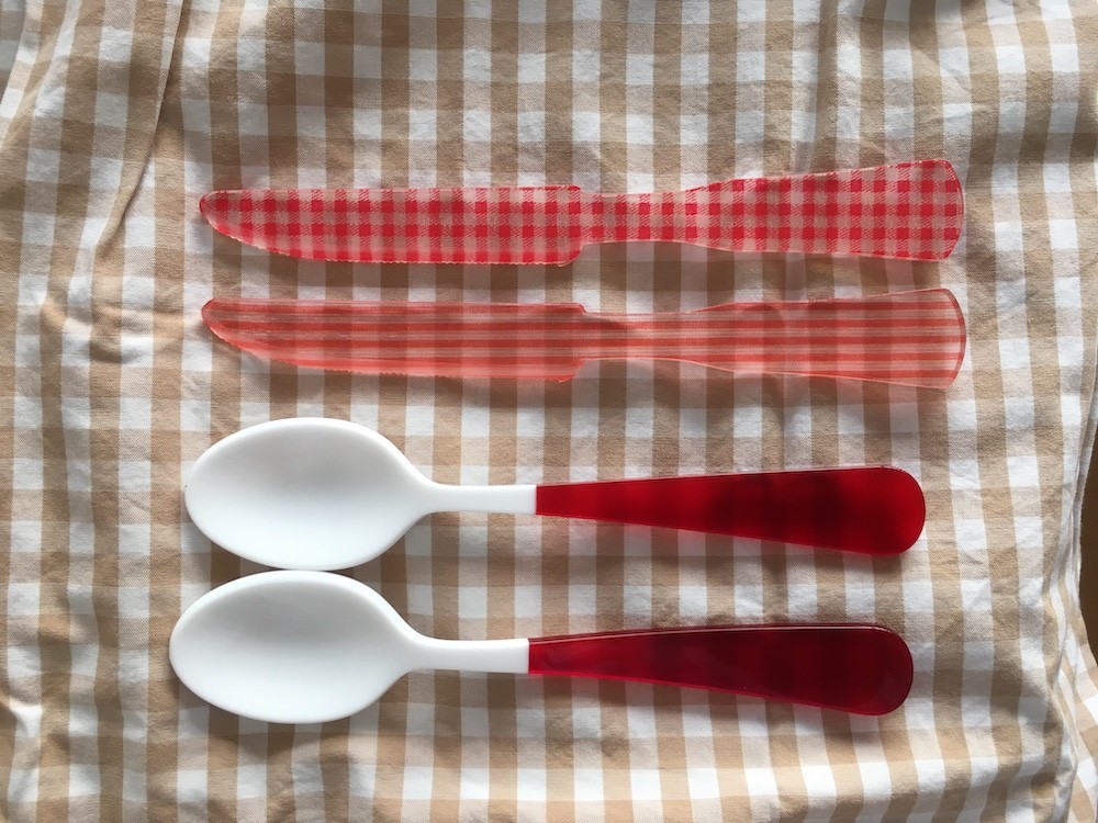뭐 하나 찾겠다고 하면 끝까지 찾아내는 성격이라, 몇달을 뒤져 파리에 남은 재고를 긁어 모았습니다! 특히 이 스푼은 이제까지 보기 어려웠던 새로운 스타일의 스푼이라 더 특별해요. 스푼의 머리 부분엔 불투명 흰색 아크릴, 손잡이 부분엔 투명한 빨강색 아크릴을 붙여 깎은거라 모양이 특이하고 깜찍해요.