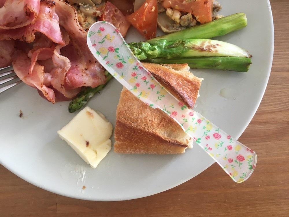 보통 잼이나 버터를 빵에 바를 때 사용하지만 전 치즈를 잘라먹을 때에도 자주 사용해요. 단, 부드러운 음식에만 사용하셔야 해요.
