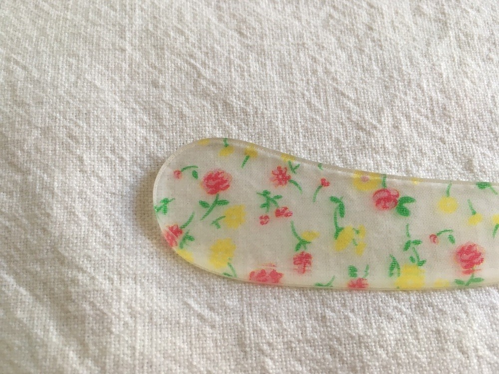 사브르만의 아크릴 가공 기법으로 만들어진 나이프예요. 아크릴 사이에 아주 얇게 천을 집어넣어 가공한 것으로, 모양이 까지거나 벗겨질 염려 없이 오래 사용하실 수 있어요.
