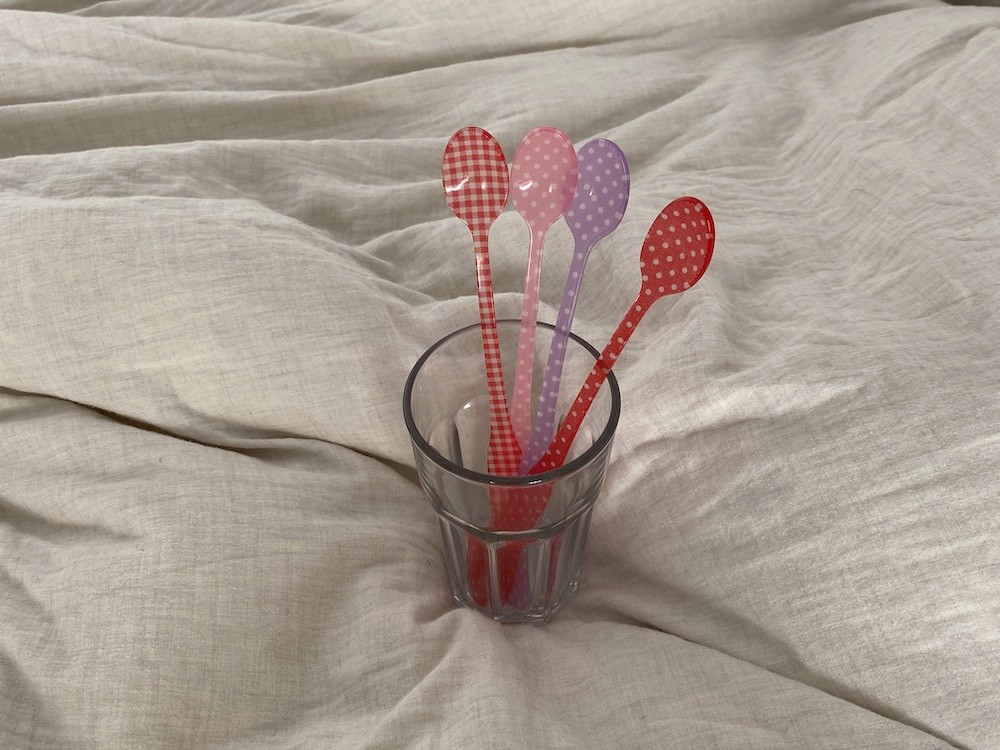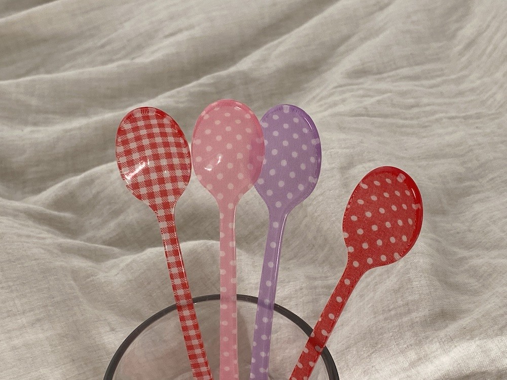 스푼 머리 부분은 티스푼 사이즈와 비슷한데 손잡이가 길쭉해서 아이스티나 아이스 커피에 시럽 혹은 설탕을 넣어 저을 때 사용하시면 딱 좋아요. 딱딱한 음식에 사용하시면 부러질 수 있으니 부드럽고 물렁한 음식에 사용하시길 추천드립니다.