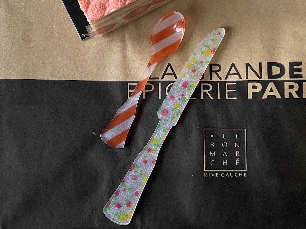 프렌치 커트러리 브랜드 사브르 파리(SABRE PARIS)의 티스푼 중 주황 줄무늬입니다.