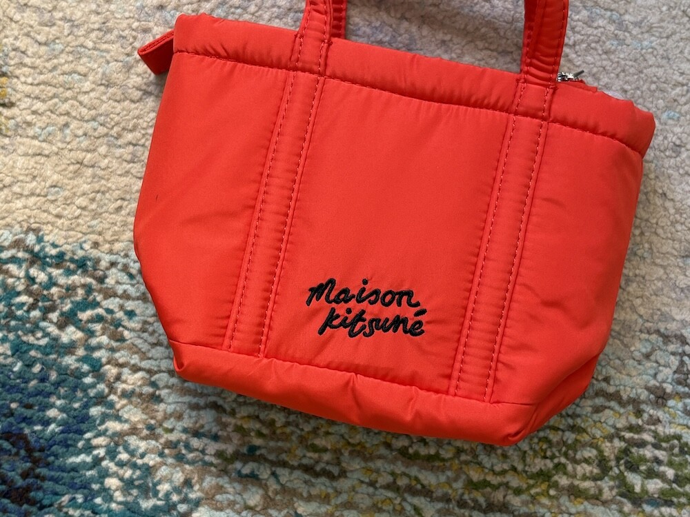 13. 메종 키츠네(MAISON KITSUNÉ) 폭스 헤드 푸퍼 Puffer 미니 토트백_와일드 스트로베리