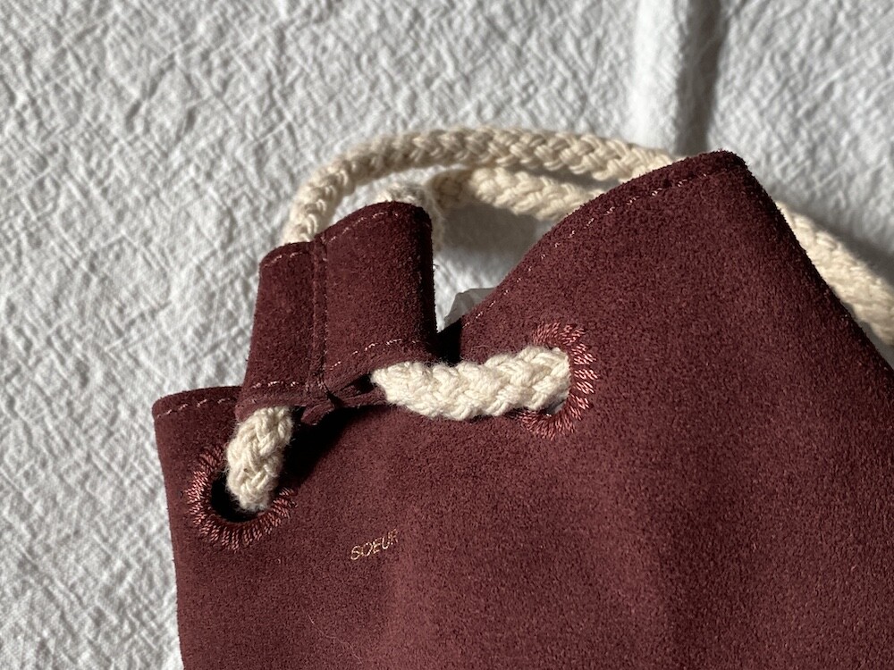 사슴 가죽으로 만들어진 복조리 모양의 다니엘백입니다.