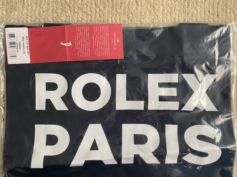 비꽁뜨 아(Vicomte A.)는 프랑스의 패션 브랜드예요. 보통 테니스 매치가 열리면 롤렉스(Rolex)가 대부분 후원을 하는데, 2019년 기념 에코백을 비꽁뜨 아(Vicomte A.)에서 만들었었대요. 여기서 롤렉스는 우리가 아는 그 시계 브랜드 롤렉스입니다.