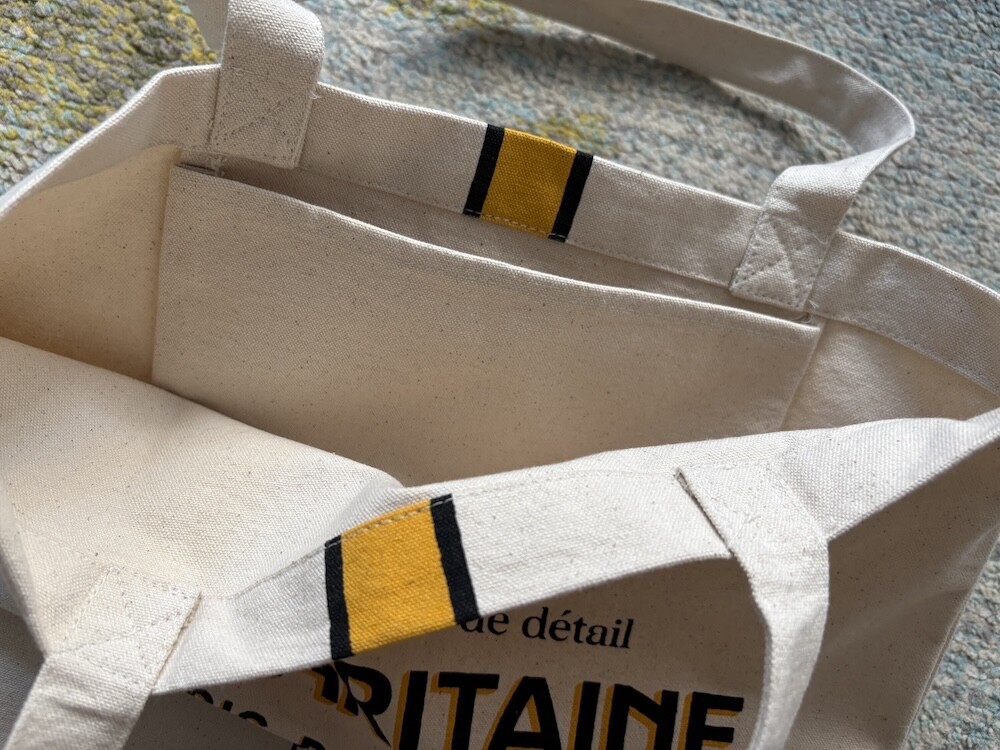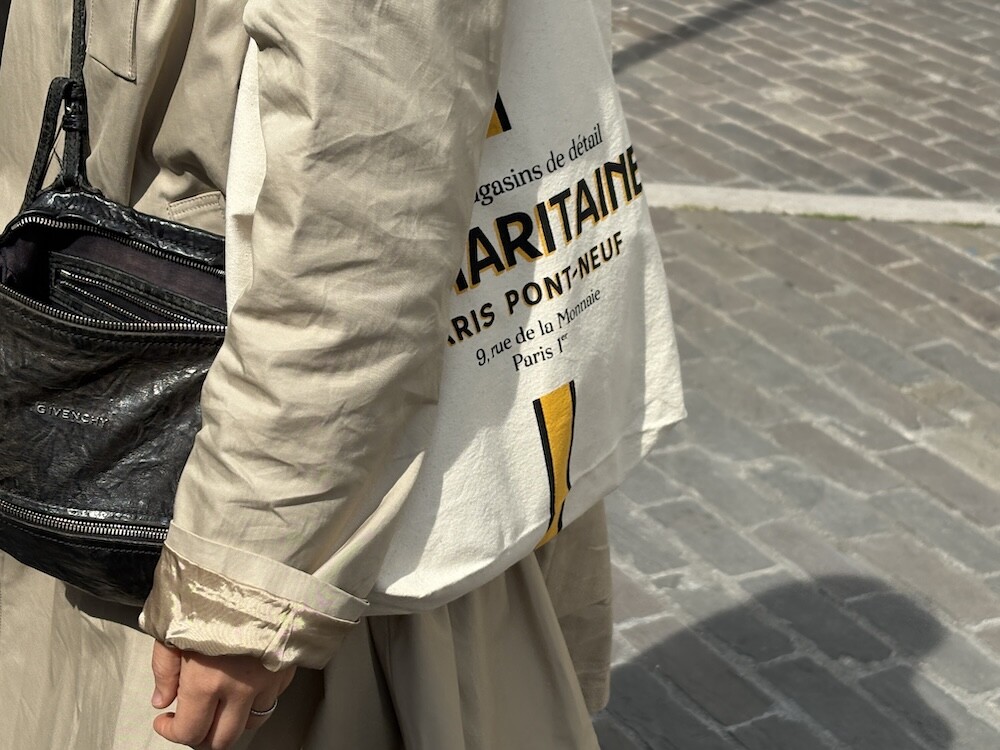 사마리텐 백화점의 가방이에요. 세로로 노란색과 남색의 줄무늬 패턴이 있는 것도 예쁘고 중간에 써진 사마리텐 이름과 파리 퐁네프라고 써진 것 그리고 백화점의 주소까지 써져 있는 모든 글씨들의 조합이 참 예뻐요. 안쪽에는 작은 주머니가 있어서 작은 물건들을 나눠 담기도 좋아요.