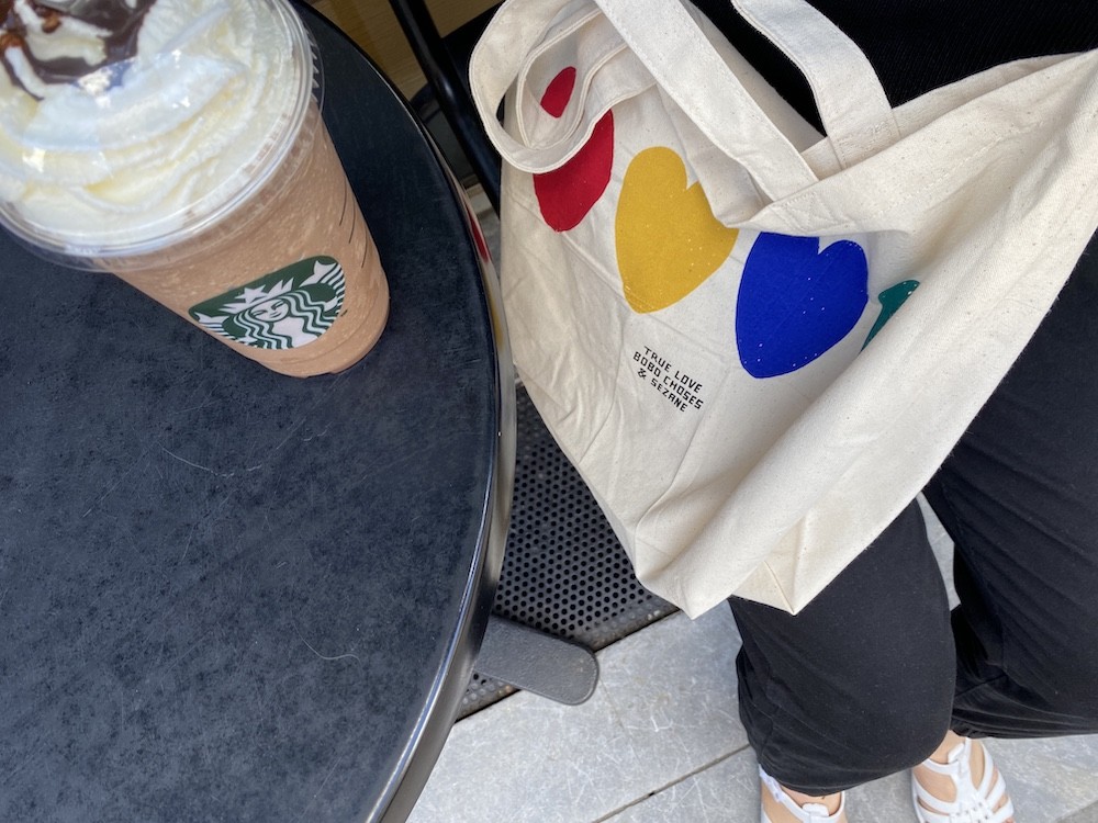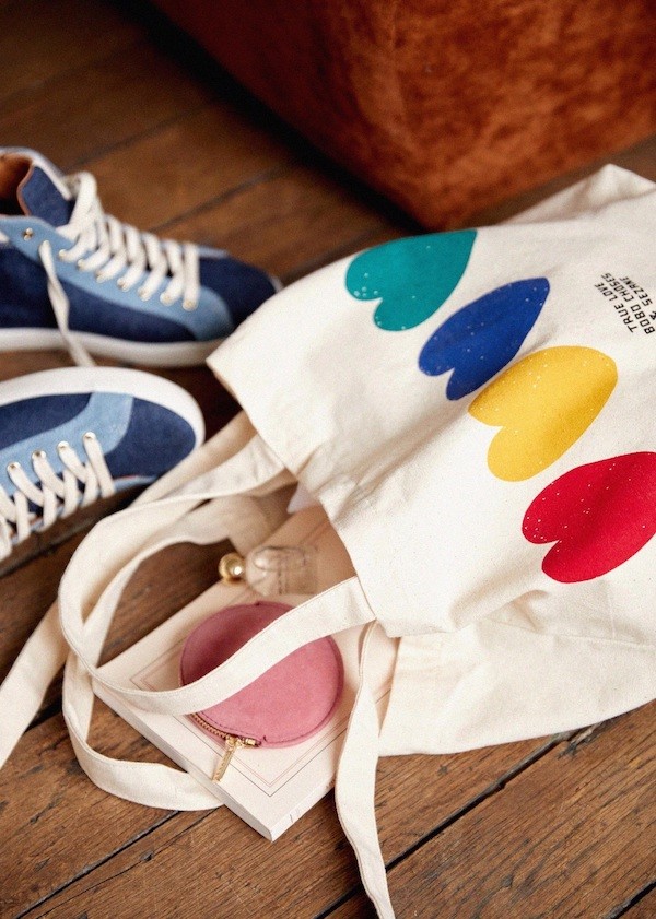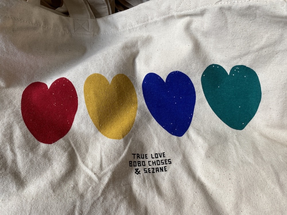 이 에코백은 보보 쇼즈와의 콜라보레이션으로 더욱 희소성 있는 제품이에요. 보보 쇼즈의 특징인 빈티지한 느낌의 프린트가 잘 드러난 가방인데, 귀여운 하트가 색깔별로 4개나 프린트되어 있어요! 어깨에 멜 수 있는 끈과 손으로 들 수 있는 끈 두가지가 한꺼번에 달려 있어 실용적이에요.