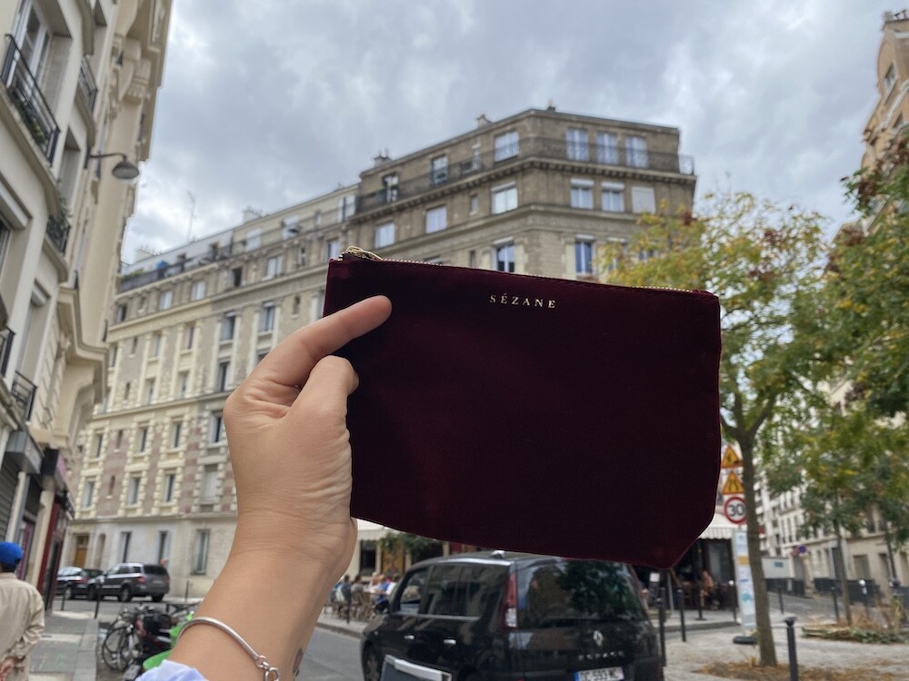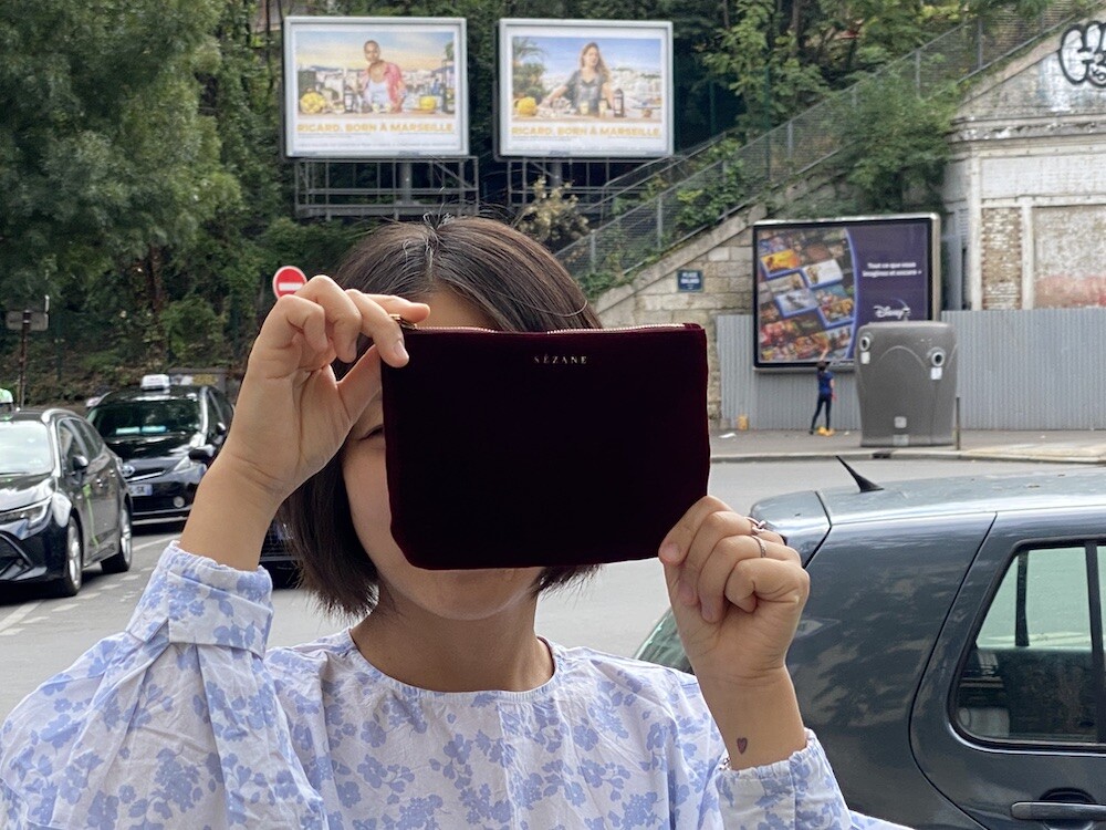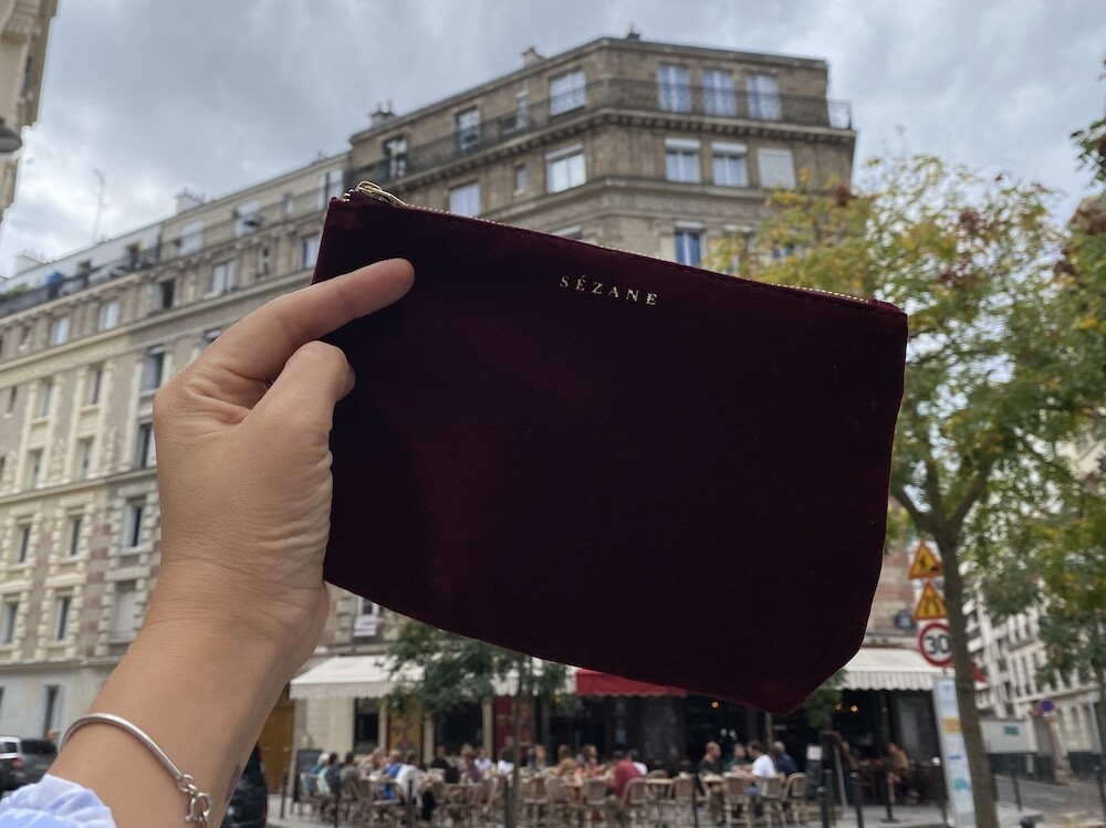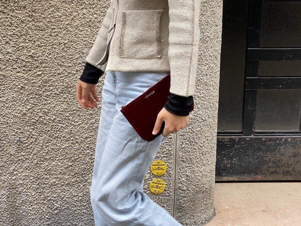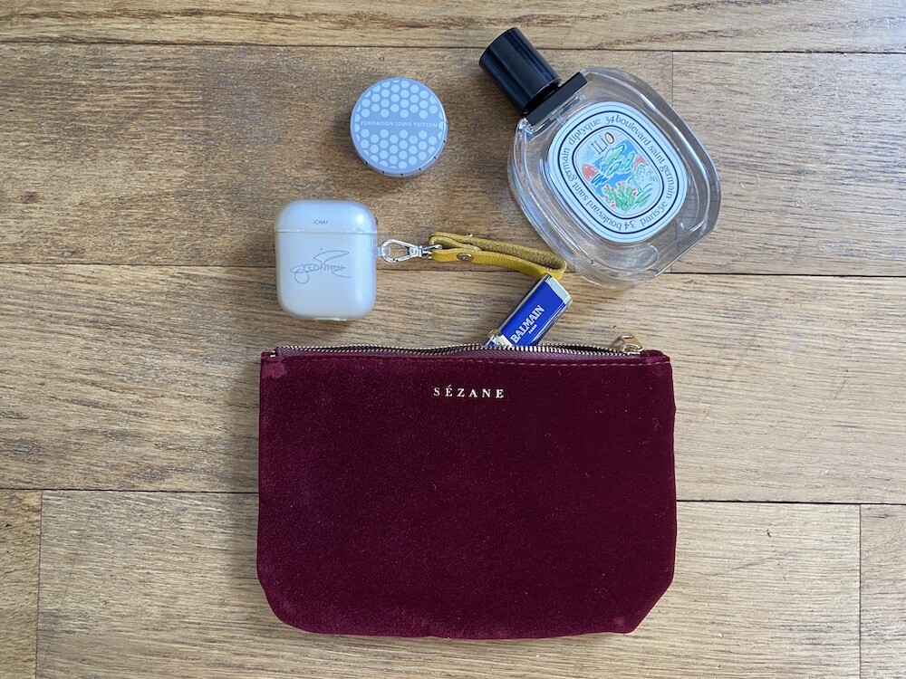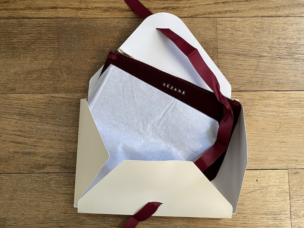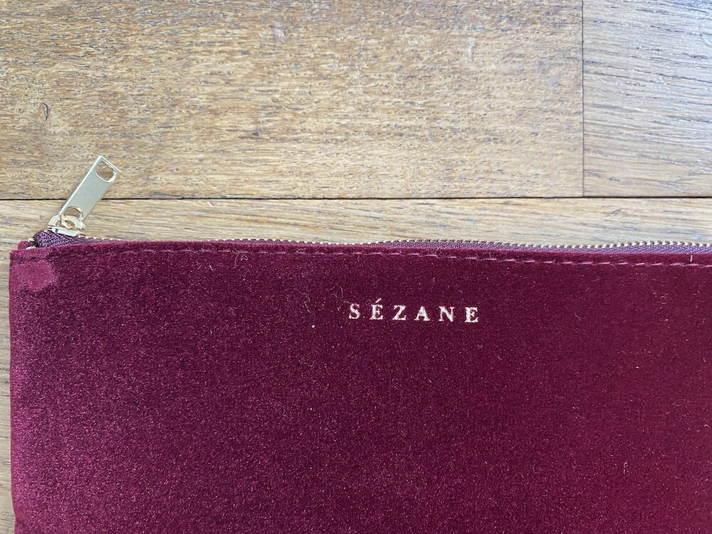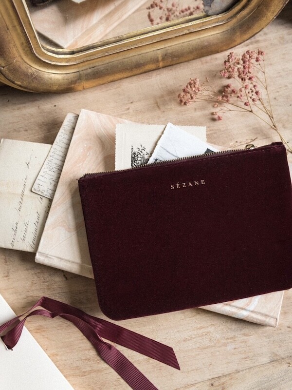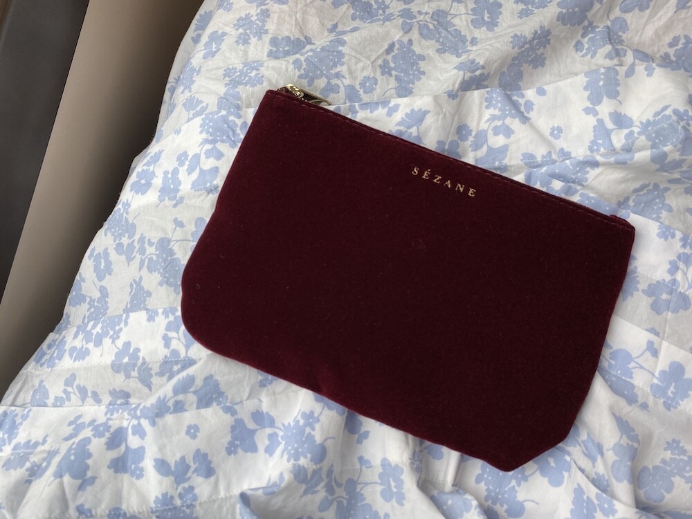세잔(Sézane) 버건디 벨벳 파우치입니다.