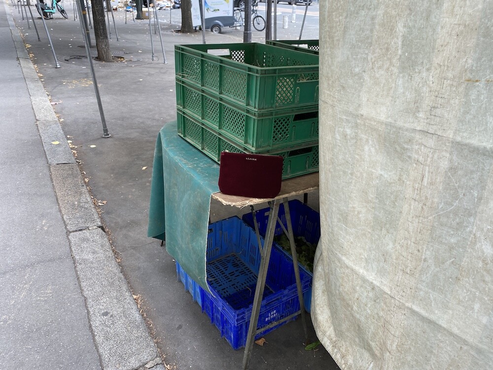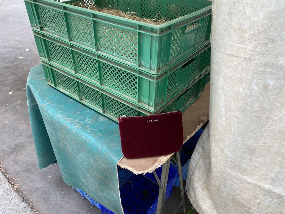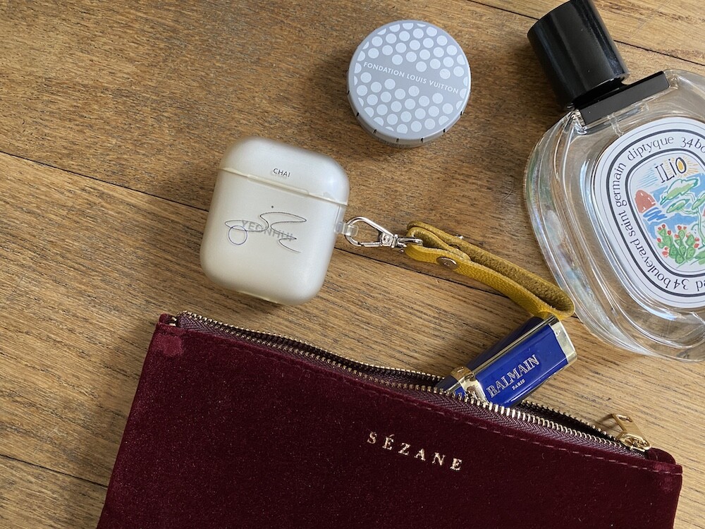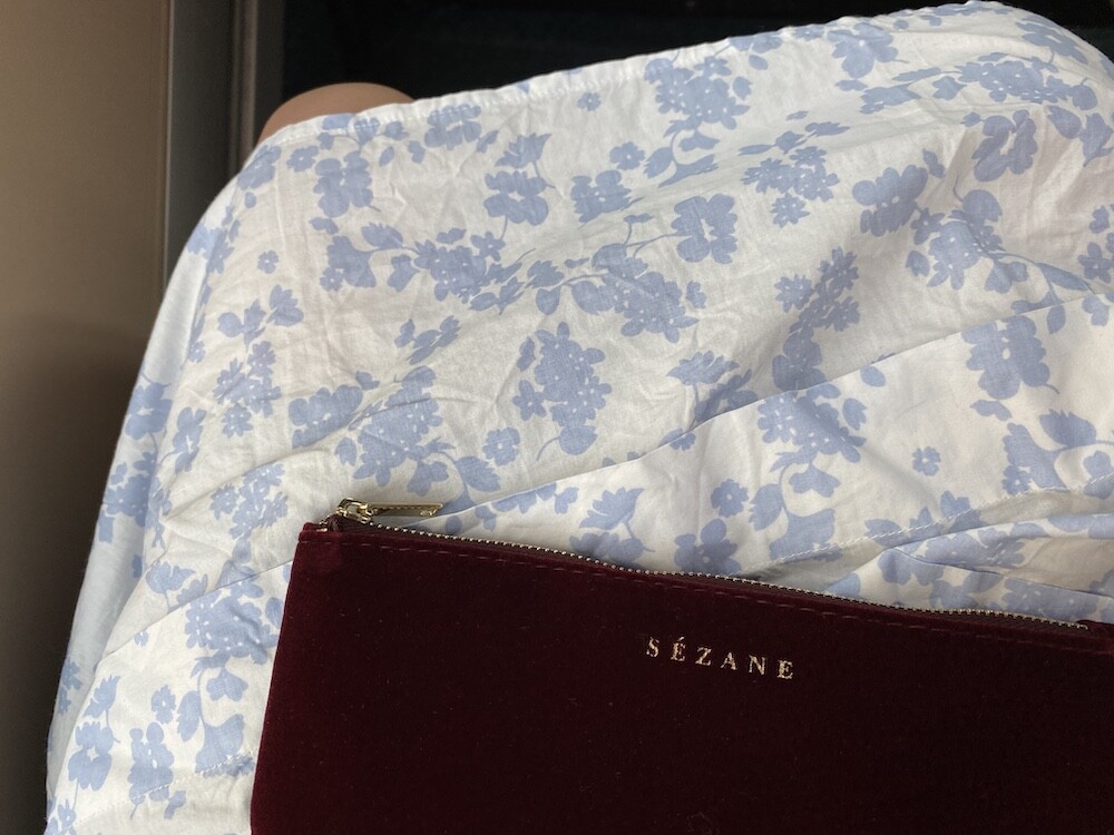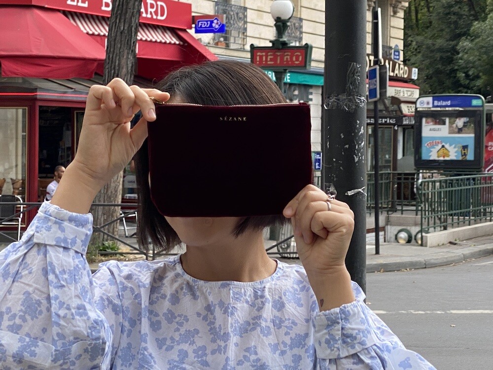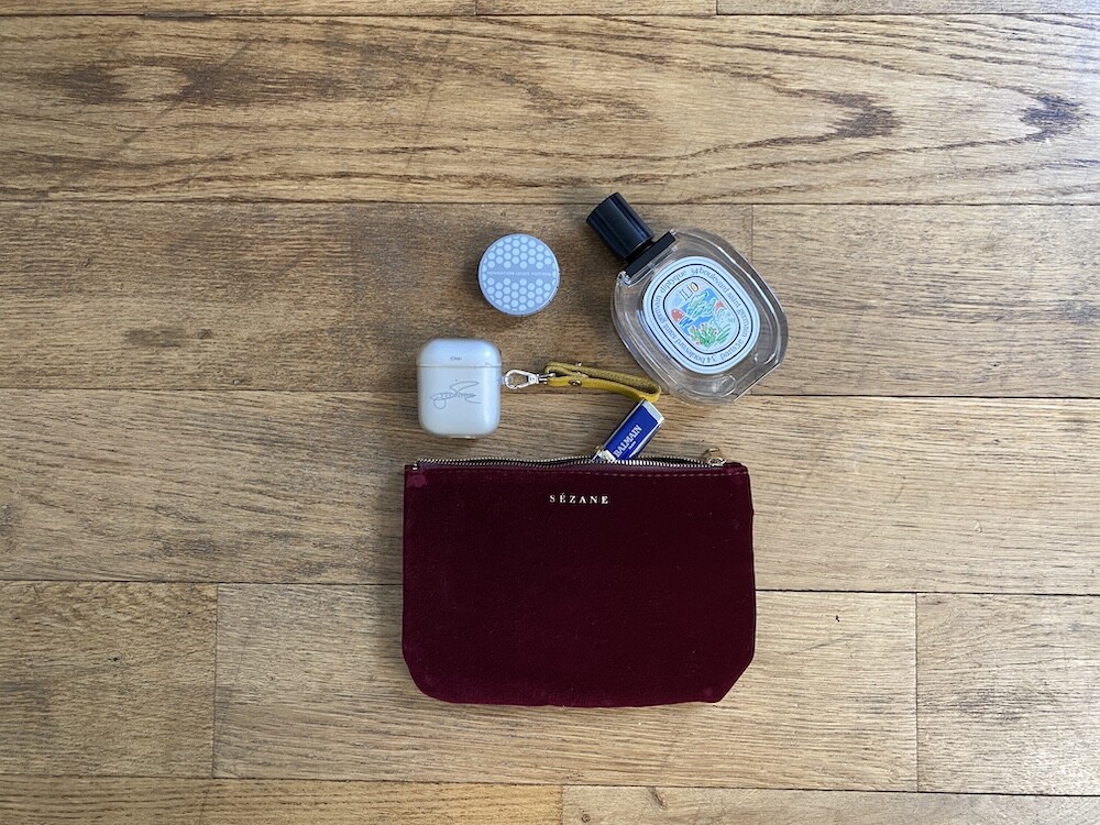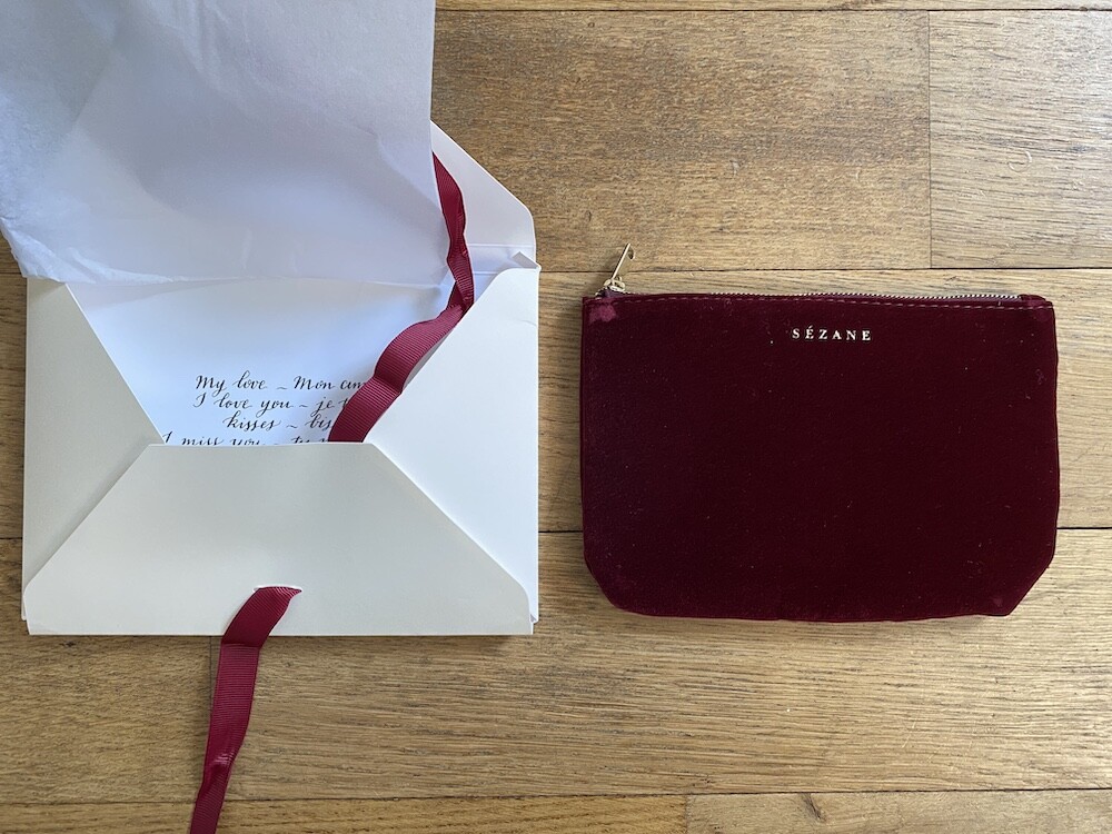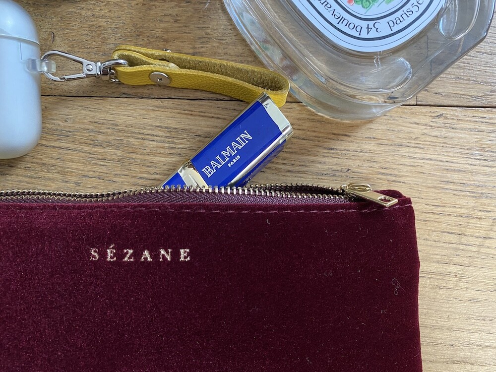 세잔(Sézane) 버건디 벨벳 파우치입니다.