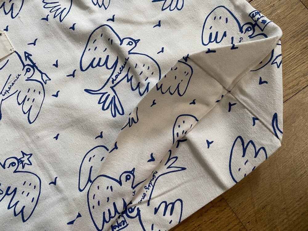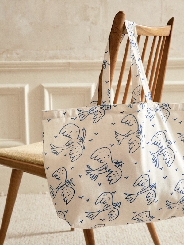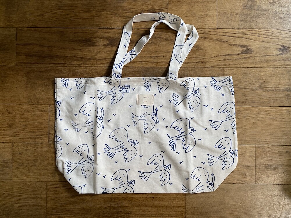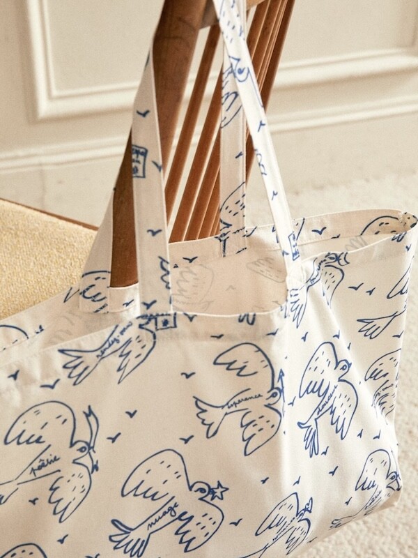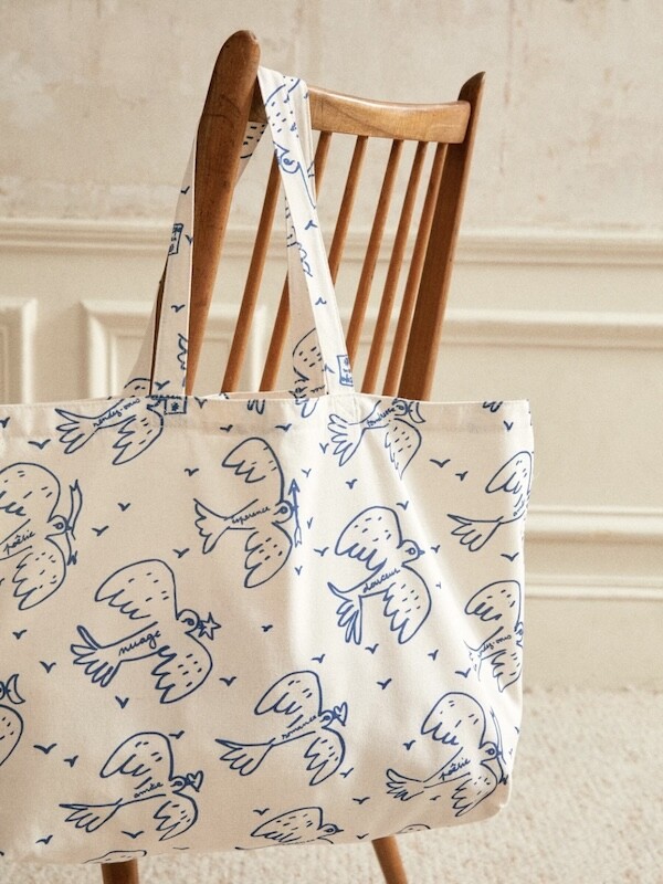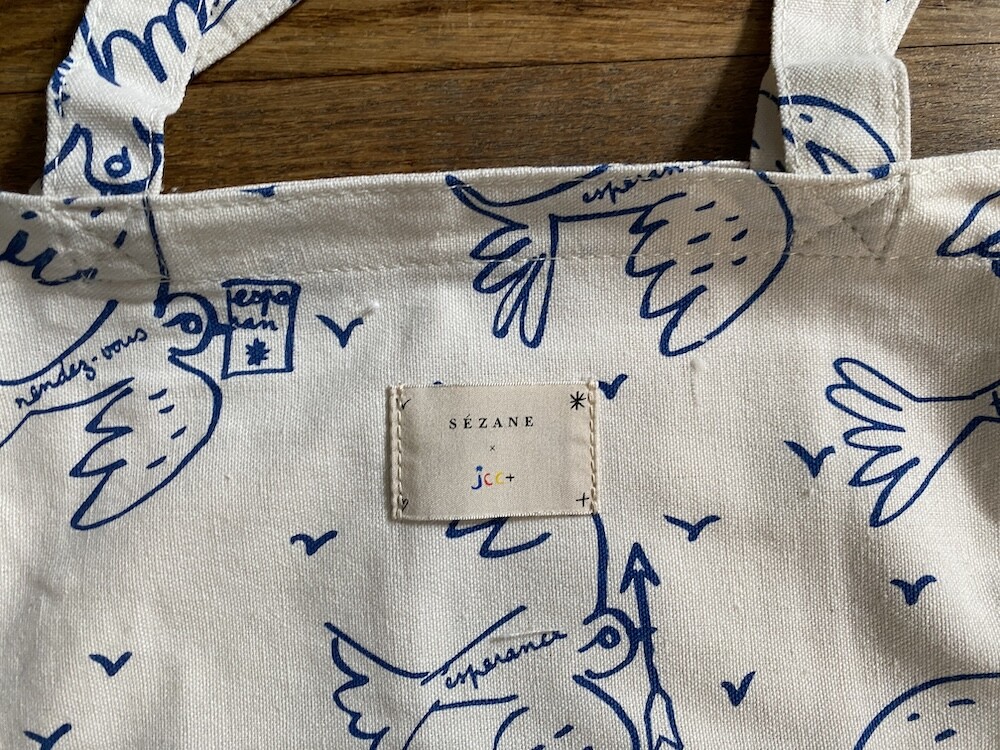 장 샤를 드 카스텔바작(JCDC, Jean-Charles de Castelbajac)의 새 그림도 귀여운데 새마다 우정, 로맨스, 시, 약속 같은 다양한 단어들이 써져 있어서 더 예뻐요. 특히 이 토트백은 세잔 로고 택에도 콜라보 이름이 써져 있어서 그간 나왔던 콜라보 제품들 중 로고 택이 제일 예쁜 것 같네요.
