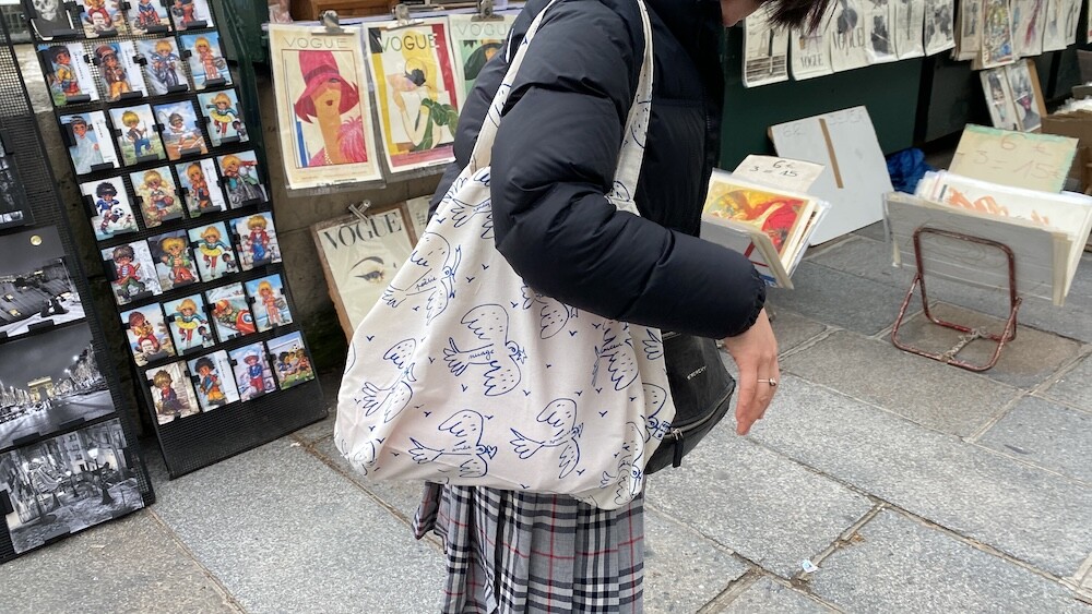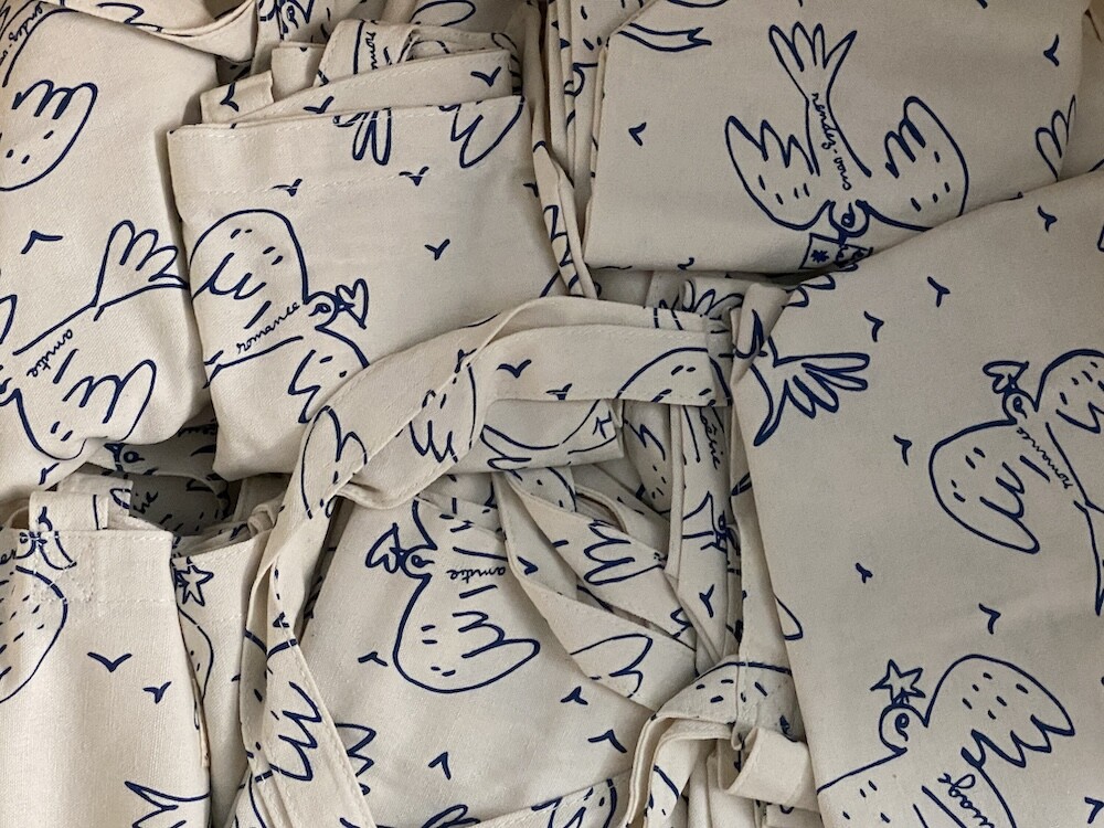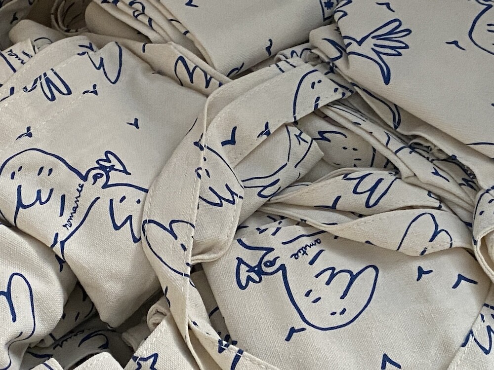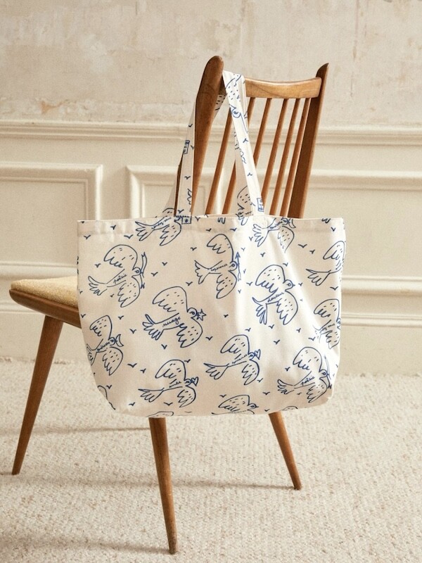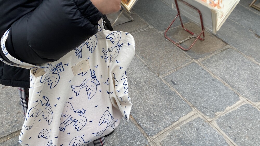 장 샤를 드 카스텔바작(JCDC, Jean-Charles de Castelbajac)의 새 그림도 귀여운데 새마다 우정, 로맨스, 시, 약속 같은 다양한 단어들이 써져 있어서 더 예뻐요. 특히 이 토트백은 세잔 로고 택에도 콜라보 이름이 써져 있어서 그간 나왔던 콜라보 제품들 중 로고 택이 제일 예쁜 것 같네요.