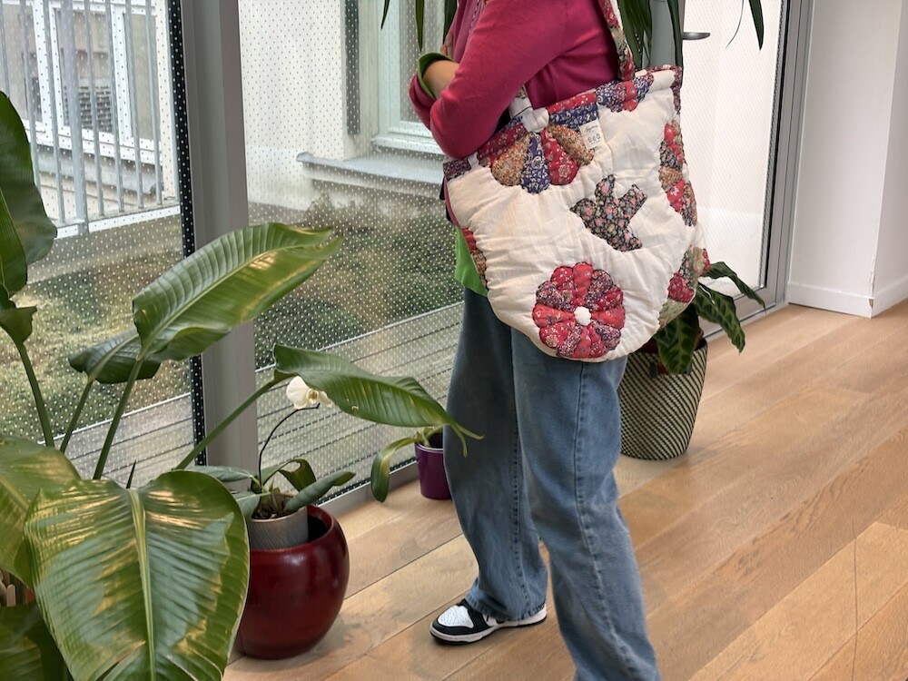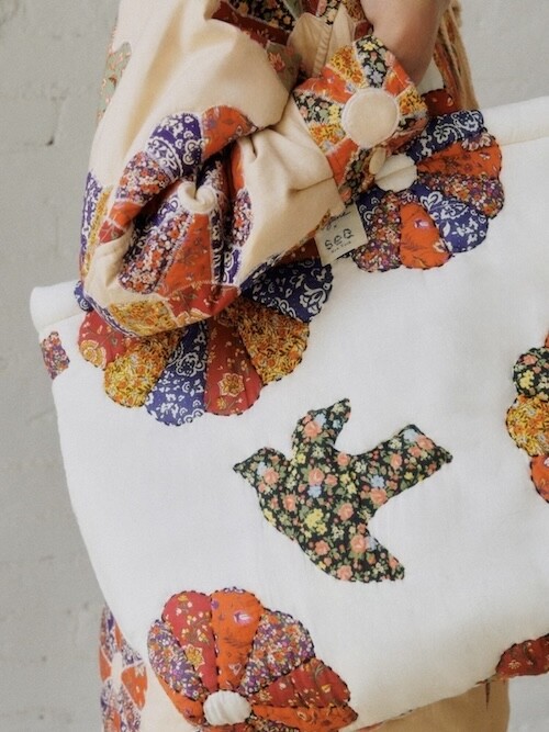 세잔과 씨 뉴욕의 세 번째 콜라보로 나온 패치워크 가방입니다. 세잔의 대표 에코백 디자인 중 하나로, 매 시즌 비슷한 사이즈에 원단만 다르게 하여 나오는 제품인데 매 시즌 한정 수량만 나오기 때문에 수량이 많지 않고, 시즌이 끝나고 나면 같은 제품은 나오지 않기 때문에 희소성이 있어요. 그런데 이번엔 특이한 게, 원단 자체가 도톰한 솜이불 같은데 그 위에 패치워크를 더해서 레트로하면서도 포근한 느낌의 가방을 완성했어요.