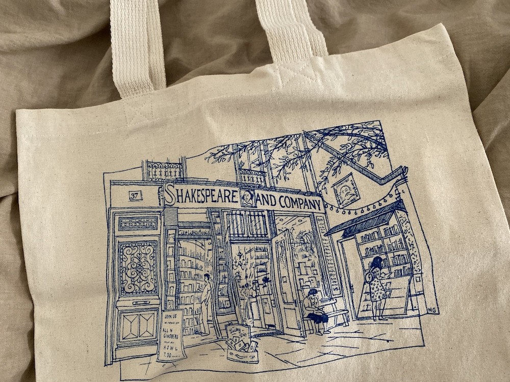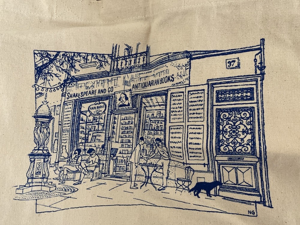 파리 5구에 위치한 세익스피어 앤 컴퍼니의 그림 에코백 버전 2입니다.