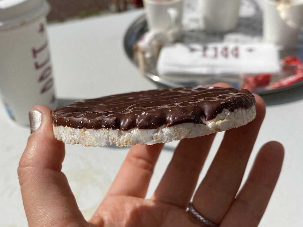 유기농 쌀로 만든 과자에 한면에만 초콜릿 코팅이 된 제품이에요. 쌀 뻥튀기와 비슷한데 꾹 눌러 놓은 거라 훨씬 바삭하고 밀도가 높아서 식감 자체가 너무 좋고요. 초콜릿과의 조화가 정말 좋아요. 저는 이 걀레트를 집에 항상 구비해 놓고 먹어요.