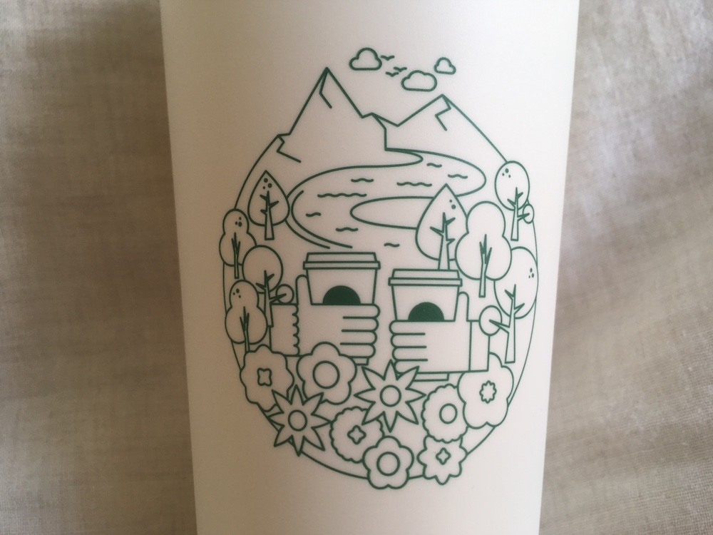 환경 보호에 대한 메시지를 전달하는 그림과 STARBUCKS라는 글씨만 깔끔하게 써져있는 제품이라 심플하게 사용하기 좋고요, 희소성이 있어서 구매 욕구를 불러 일으키는 제품 같아요.
