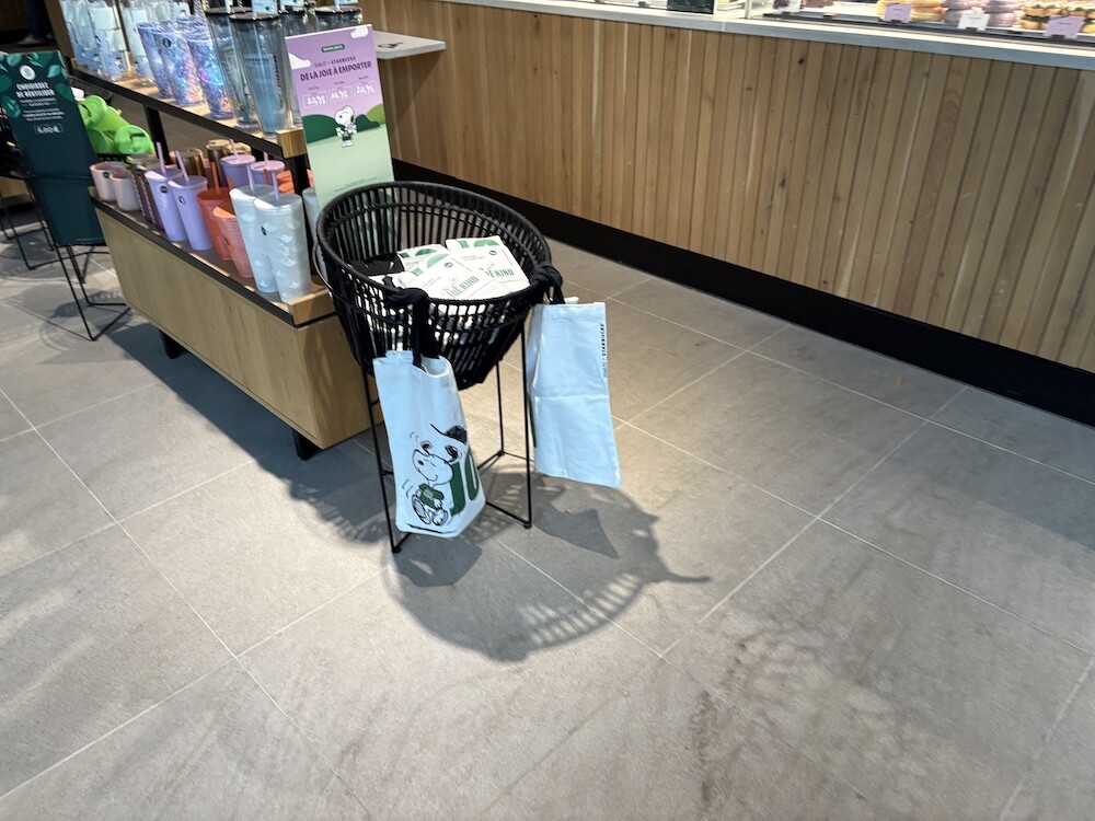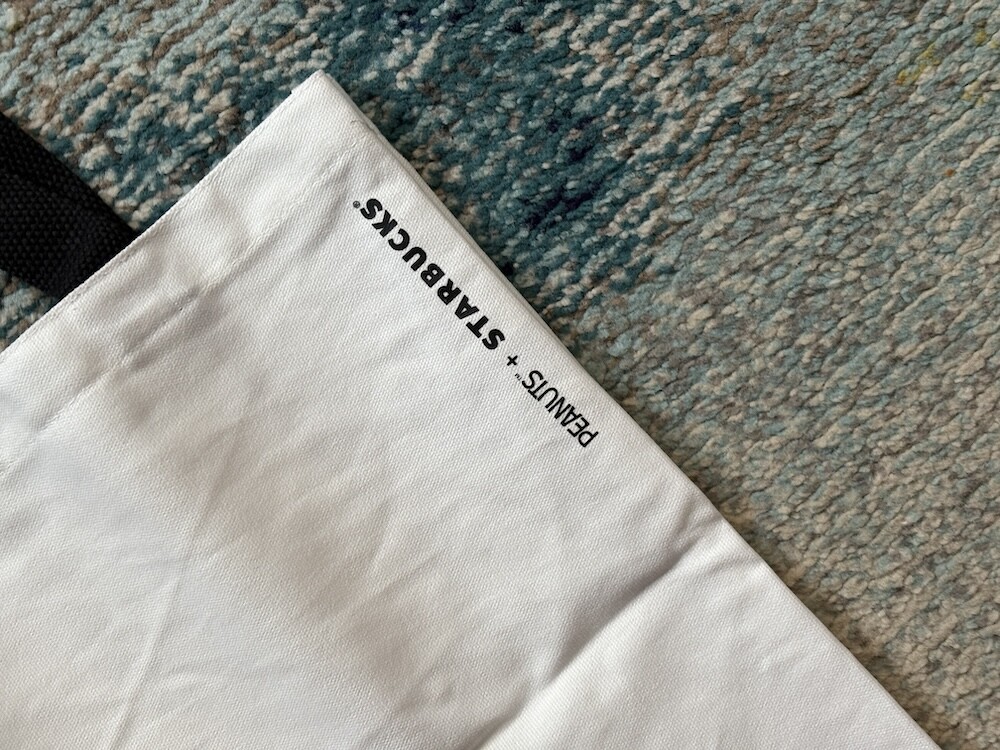 귀여운 스누피 그림이 그려진 스타벅스 에코백이에요. 이 협업은 전 세계에 친절을 퍼뜨리는 것을 목표로, 스타벅스가 사업을 운영하는 국가의 85%에서 진행된다고 하는데 프랑스 스타벅스에서도 제품 판매를 시작했더라고요. 행복한 표정의 스누피와 우드스탁을 보고 있으면 덩달아 기분이 좋아지는 것 같아요.