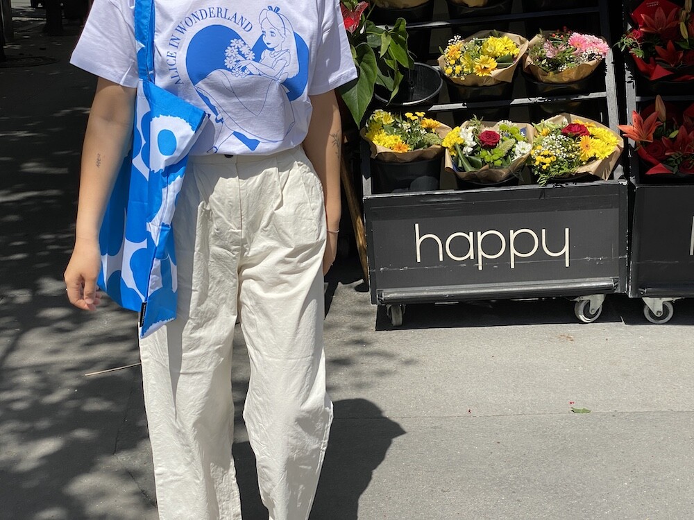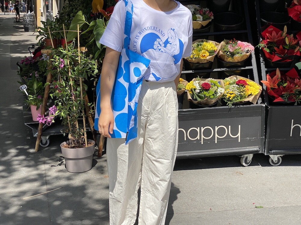 이상한 나라의 앨리스가 예쁜 파란색으로 프린트 된 이 티셔츠는 앨리스의 사랑스러움을 모두 담고 있어요. 예쁜 원피스, 리본 헤어밴드, 메리제인 슈즈, 배경의 파란 하트까지! 뭐 하나 예쁘지 않은 곳이 없는 티셔츠입니다. 게다가 정품 디즈니 콜라보 제품이에요! 여름엔 단품으로, 가을 겨울엔 가디건과 함께 두루두루 입으실 수 있으실 거예요.