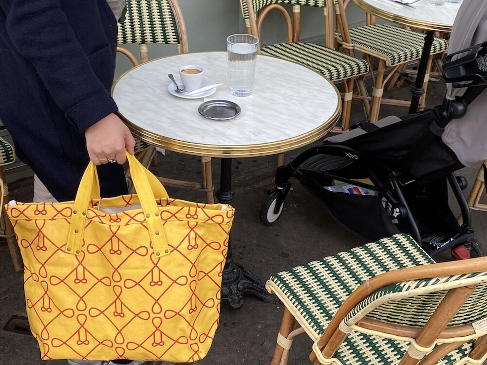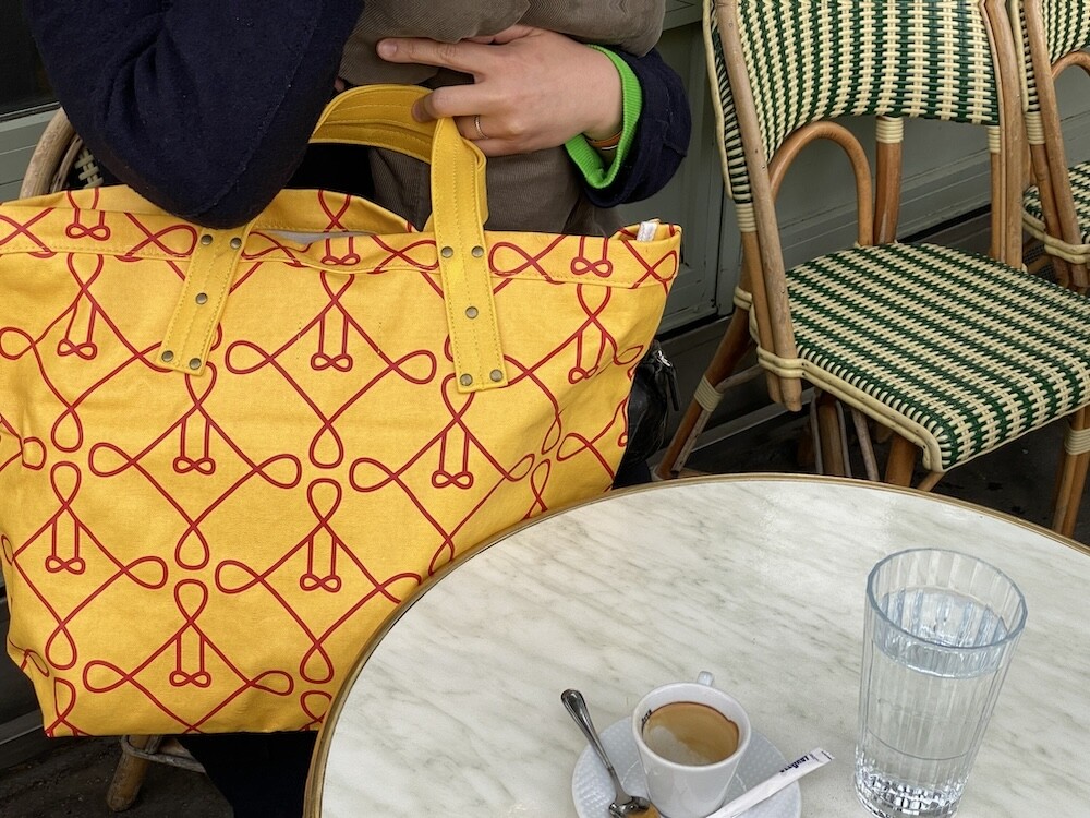 탄탄한 캔버스 소재에 노랑색으로 코팅이 되어 있어서 생활 방수가 가능해요. 비오는 날에 들고 나갔었는데 겉에 묻은 비 얼룩도 물티슈로 쓱쓱 닦으니 지워지더라고요. 사이즈가 넉넉해서 짐 많은 날 사용하기 좋고, 물건을 많이 넣어도 모양이 흐트러지지 않아서 좋습니다. 밑면 넓이가 있어서 가방을 바닥에 세워놓을 수 있는 것도 엄청 편했어요.