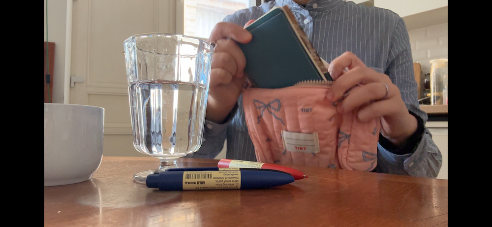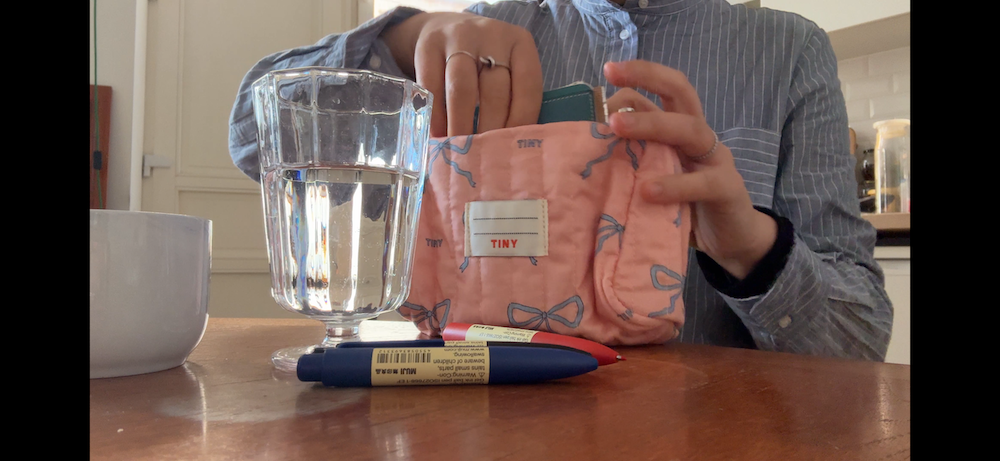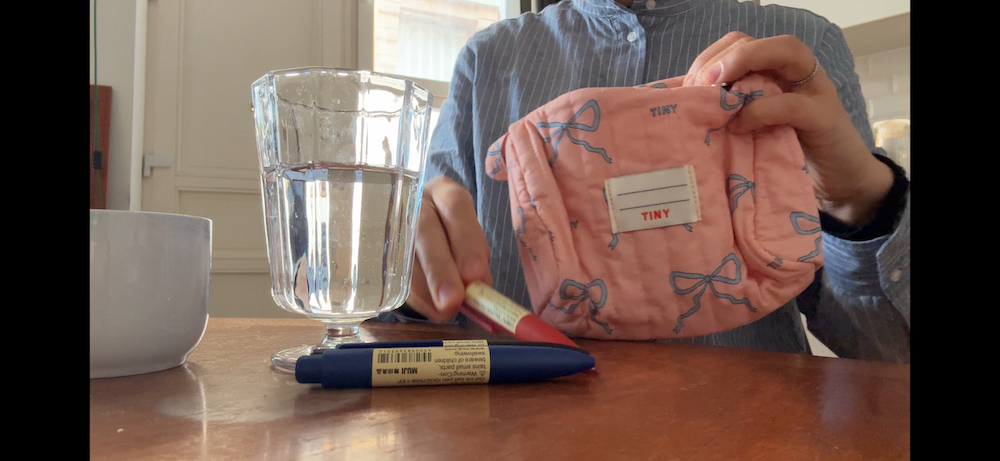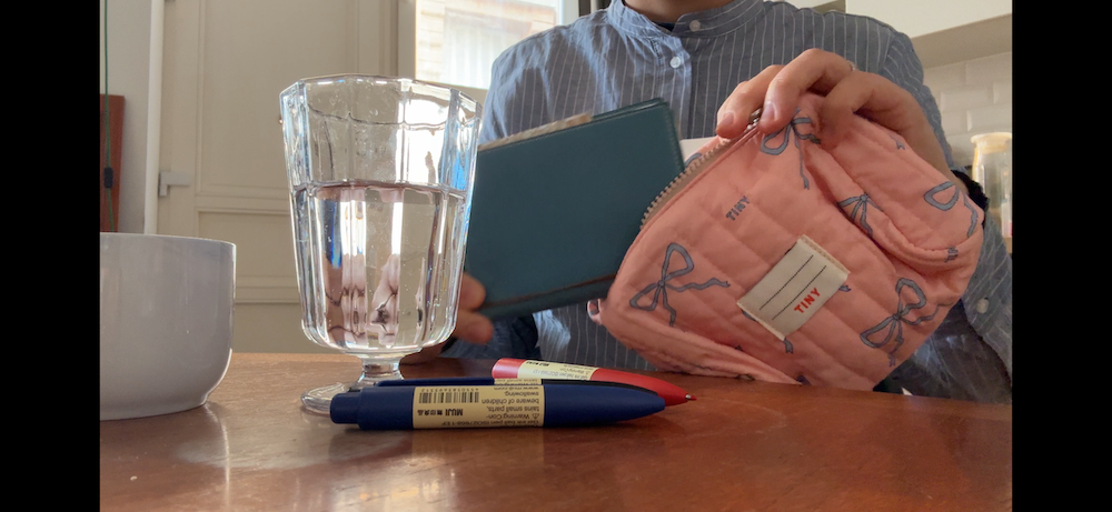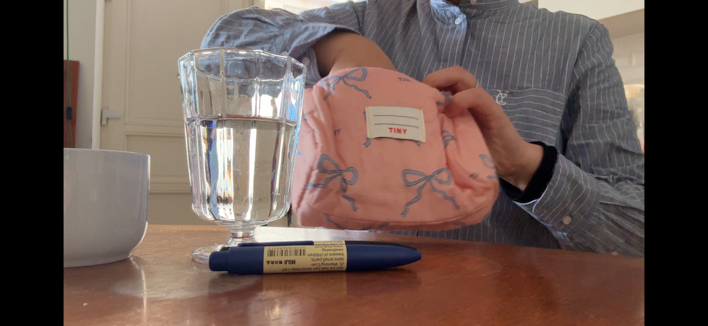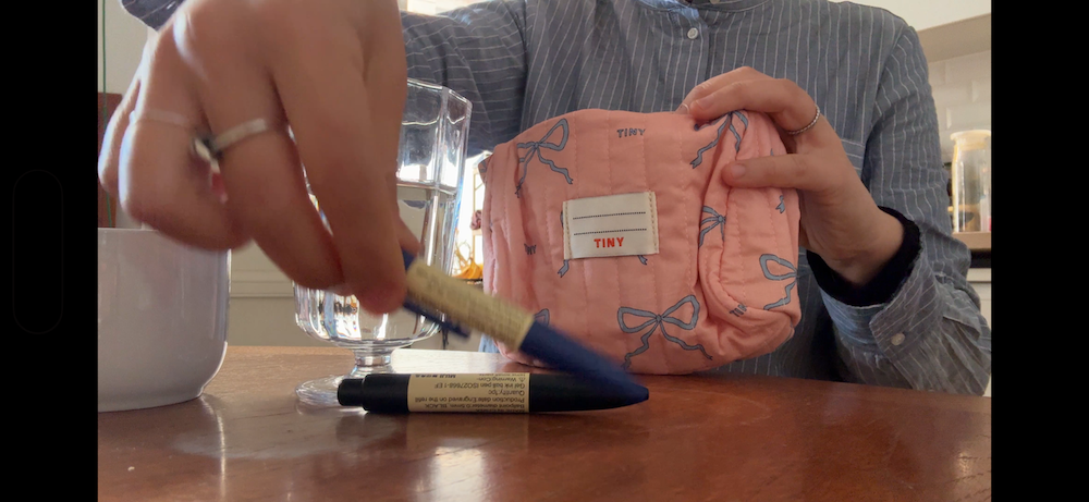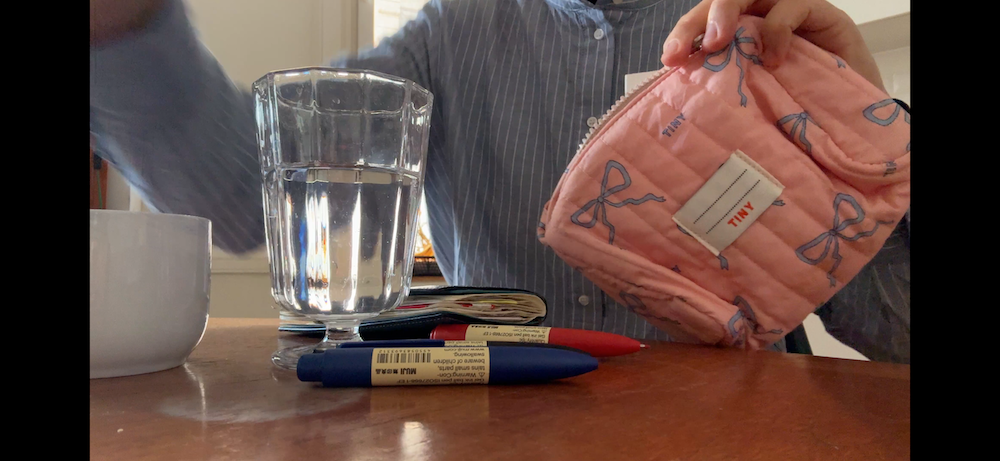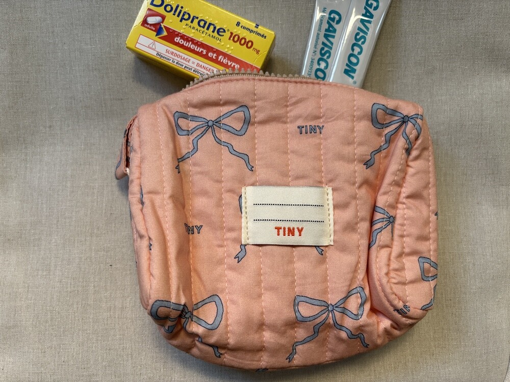 빅 파우치는 여행 다니실 때 물건들을 담기에 좋았다면, 이 스몰 파우치는 평소에 데일리로 사용하시기 좋아요. 앞쪽에는 이름을 쓸 수 있는 라벨이 달려 있는데 여기에 이름을 쓰면 아마 더 귀여울 거예요.