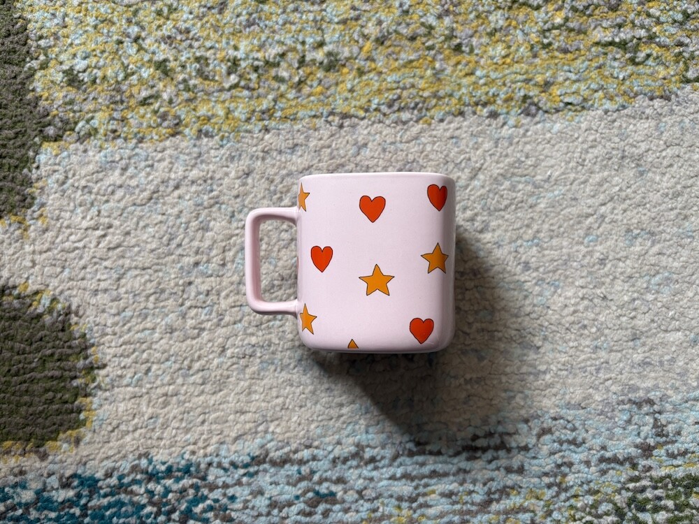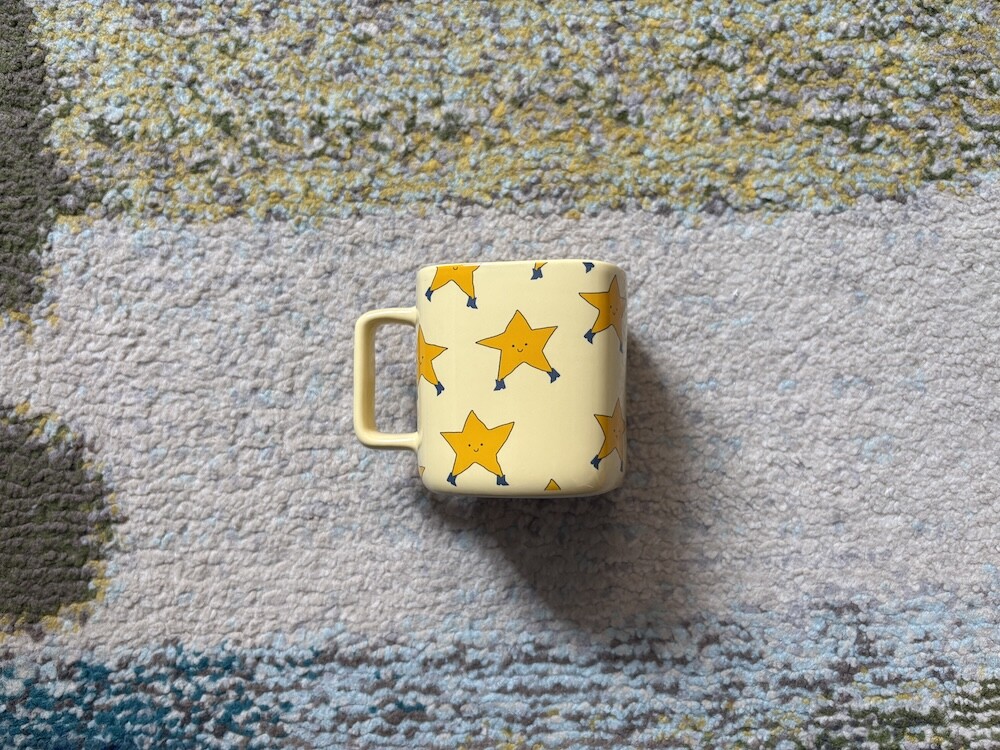 귀여운 그림들이 그려진 컵이에요. 컵이 네모 모양인 것 같으면서도 전체적으로 둥글려져 있어서 마시멜로처럼 몽글몽글 귀여운 느낌이 드는데다가 흰색을 섞은 것 같은 분홍, 노랑색도 귀여워요. 묵직한 느낌의 머그라 내구성 좋게 오래오래 사용하실 수 있으실 거예요.