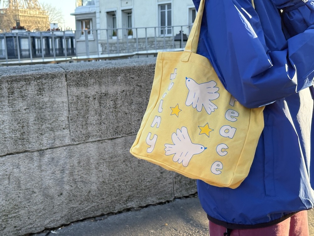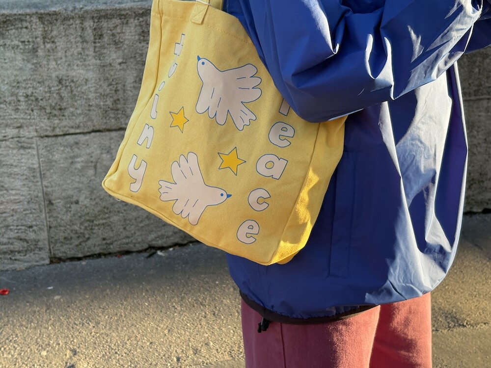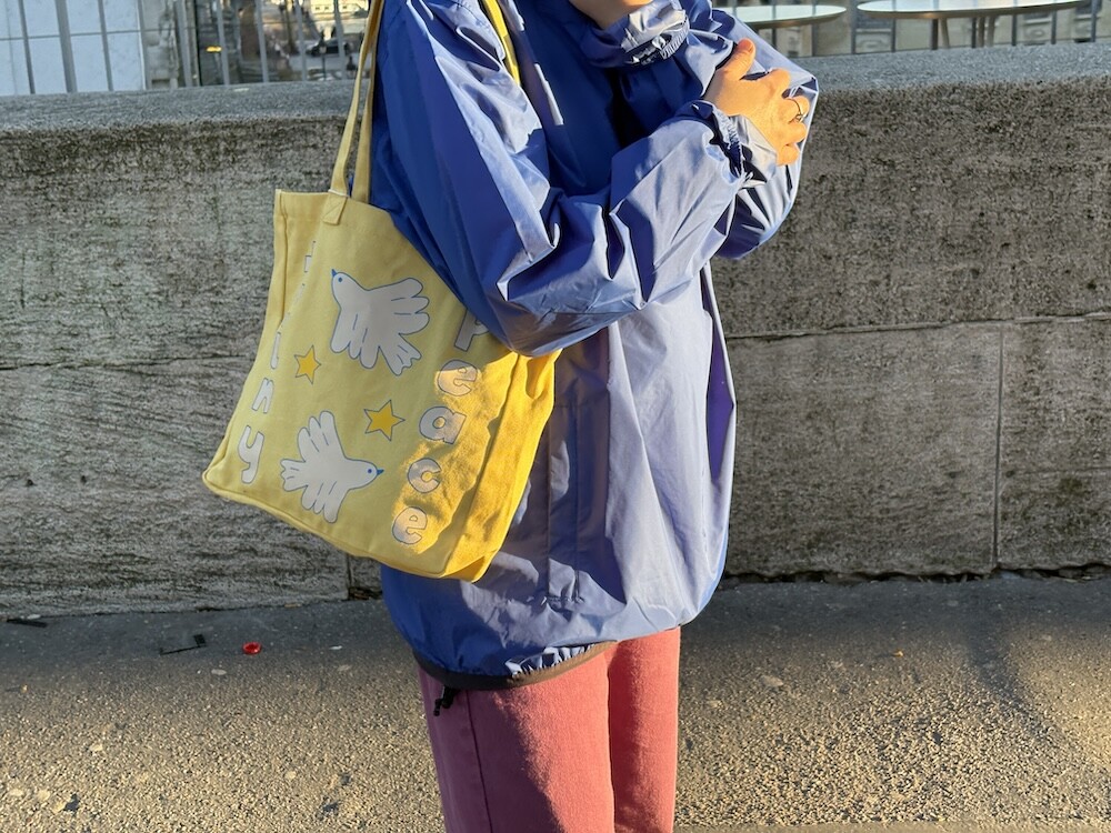 그림이 귀여운 가방이에요. 평화의 상징 비둘기, 별 모양까지! 마음이 시끄러운 날 이 가방을 메면 조금은 평화로워지지 않을까요? 가방의 모양이 두께가 있는 박스형이라 책 같은 물건들을 넣어 다닐 때도 편하더라고요. 안쪽에는 작은 주머니가 따로 달려 있어서 카드 같은 작은 물건들은 따로 넣을 수도 있어서 실용성도 좋아요.