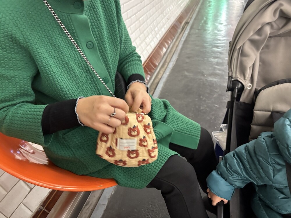 빅 파우치는 여행 다니실 때 물건들을 담기에 좋았다면, 이 스몰 파우치는 평소에 데일리로 사용하시기 좋아요. 앞쪽에는 이름을 쓸 수 있는 라벨이 달려 있는데 여기에 이름을 쓰면 아마 더 귀여울 거예요.