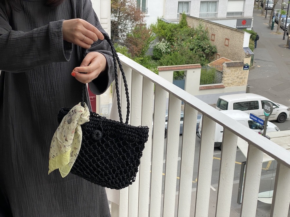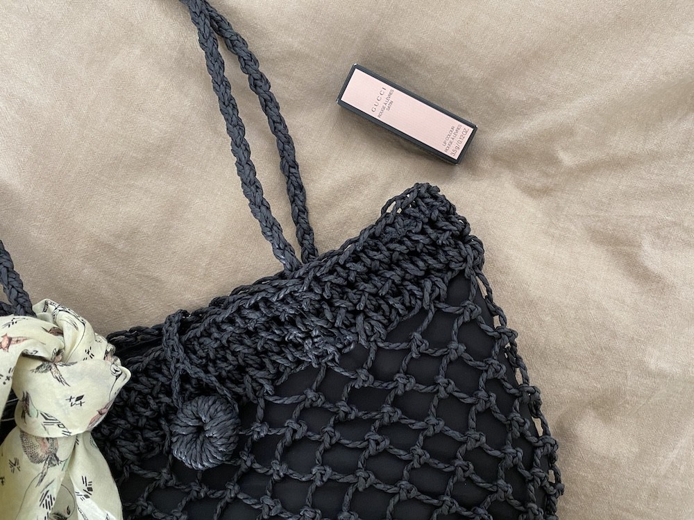 이 크로쉐 밀짚백은 겉면은 밀짚으로 짜여진 소재인데 안쪽엔 안감이 있어 내용물이 보일 걱정 없이 메실 수 있어요. 게다가 단추가 달려 있어서 가방을 중간에서 한번 닫아줄 수 있기 때문에 가방 안이 훤히 보이지 않고요. 사이즈가 한국사람 체형에 딱 잘 맞아서 여기저기 활용하시기 좋을 것 같아요.
