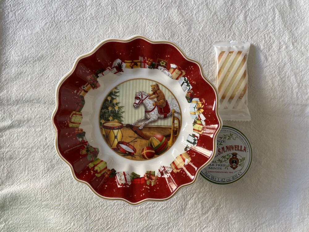 빌레로이 앤 보흐에서 크리스마스를 기념하여 나온 Noël 노엘 라인의 트레이예요. 위에서 보면 그냥 접시 같지만 아랫 부분에 다리가 달려서 케이크 같은 디저트류를 올려 놓으면 정말 예쁜 제품이에요. 게다가 안쪽에 그려진, 말을 타고 있는 꼬마곰 그림이 정말 귀여워요. 여기에 음식들을 담아 놓는 것 만으로도 연말 분위기가 물씬 날 거예요.