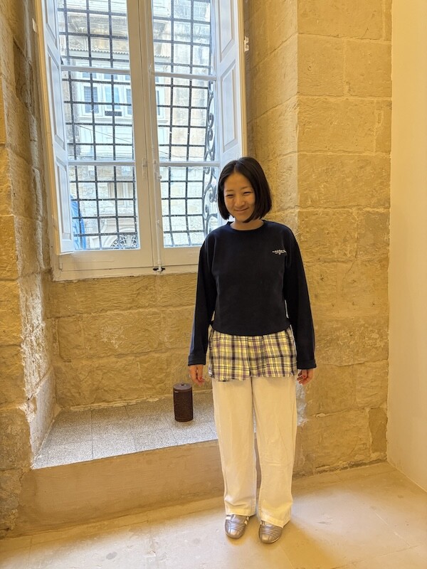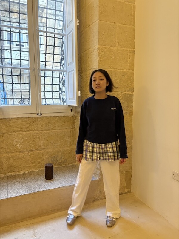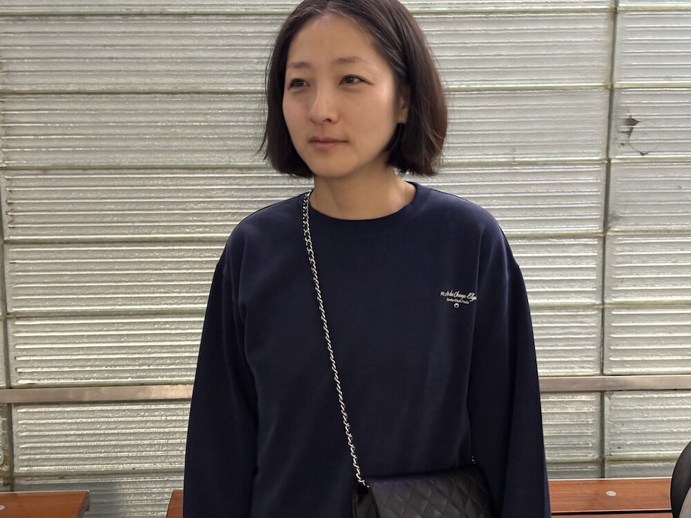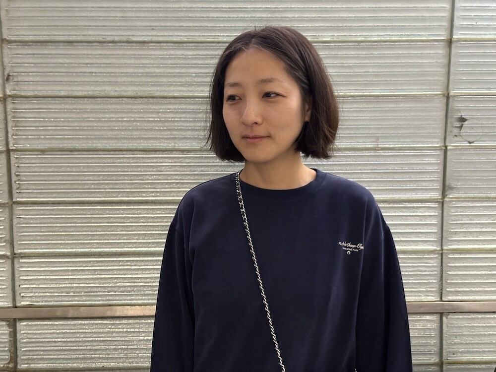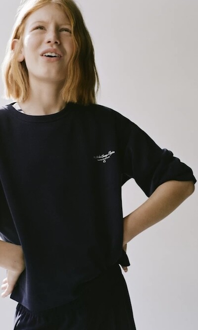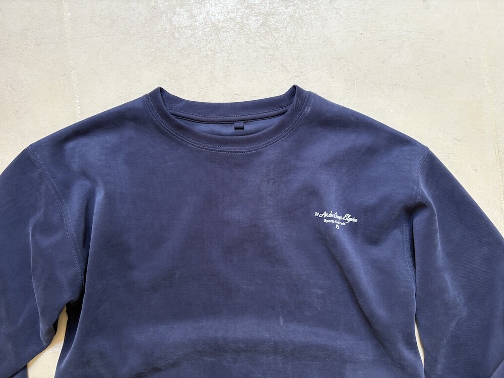 부들부들한 원단의 맨투맨이에요. 사실 목 부분은 맨투맨 디자인인데 소매 끝과 밑단은 일반 티셔츠처럼 되어 있어서 오히려 원피스에 겹쳐 입거나 할 때 조이는 부분이 없어서 편해요. 넉넉한 사이즈로, 단독으로 입어도 원피스나 티셔츠와 함께 레이어드해 입어도 예쁘고요. 무엇보다 원단이 너무 부드러워서 얼굴을 계속 대고 싶을 정도예요. 저는 요즘 이 티셔츠를 침대에 놓고 자다가 추우면 입거든요. 잠옷으로 입어도 될 정도로 부드러운 감촉이 너무 좋더라고요. 또, 원단 자체가 코듀로이는 아닌데 코듀로이처럼 직조감이 보여서 심심하지 않고 예뻐요.
