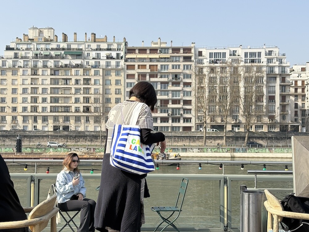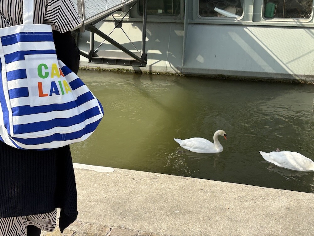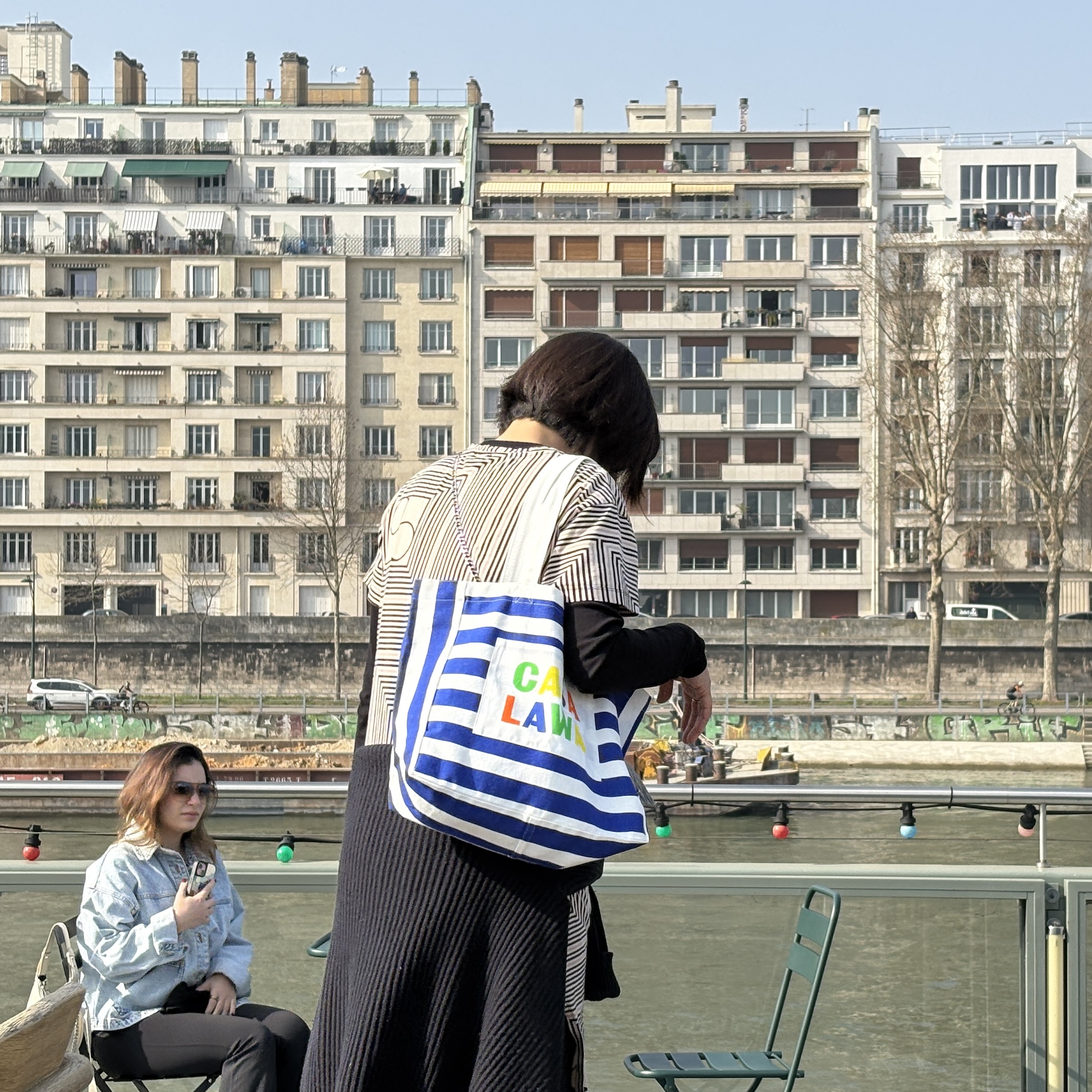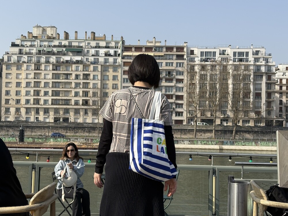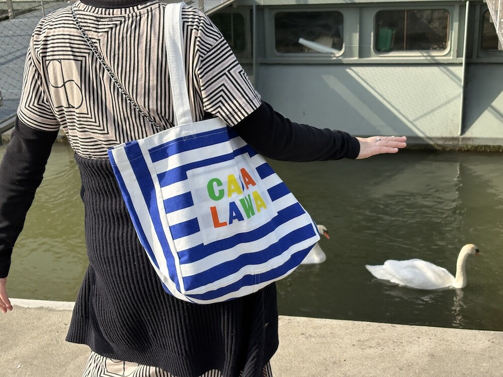 파란색 줄무늬에 까사 라와(CASA LAWA) 로고 라벨이 크게 박음질된 가방입니다. 가방 디자인만 봐도 눈부신 시칠리아의 풍경이 펼쳐지는 것 같은 느낌이에요. 어느 계절에나 예쁘겠지만 특히 한여름에 메면 엄청 예쁠 에코백입니다.