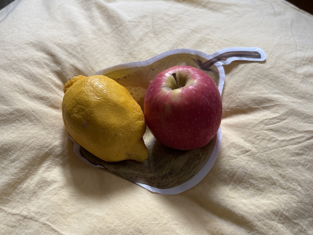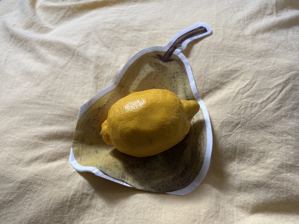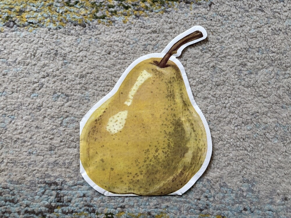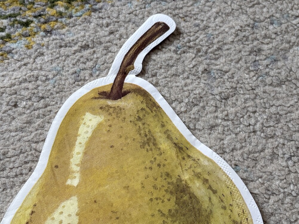 서양배 프린트가 된 냅킨입니다. 그림이 사실적으로 그려져 있어서 심심한 식탁에 생기를 불어넣어 줄 거예요. 사이즈가 넉넉해서 커트러리 뿐 아니라 작은 접시나 과일을 올려 놓아도 예쁘더라고요.